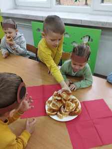 Pluszowy Miś - ciepły, dobry i zawsze pod ręką. To dzięki niemu, dzisiejszy dzień w przedszkolu był wyjątkowy. To właśnie dzisiaj, 27 listopada przedszkolaki obchodziły święto swojej ulubionej maskotki. Z tej okazji mogły zabrać swojego wiernego towarzysza do przedszkola, aby razem z nim bawić się, śmiać i uczestniczyć w zajęciach. Zadań do wykonania było bardzo wiele: wykonanie opaski, zabawy matematyczne, kolorowanie, układanie obrazków. Wszystko to związane było oczywiście z bohaterem dzisiejszego dnia. Na koniec pobytu w przedszkolu, dzieci poczęstowały się słodkim ,,co nie co". Uśmiechnięte i zadowolone rozeszły się do swoich domów, aby odpocząć i trochę poleniuchować, bo przecież to też misie bardzo lubią.