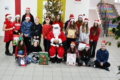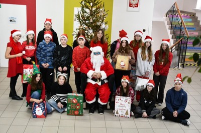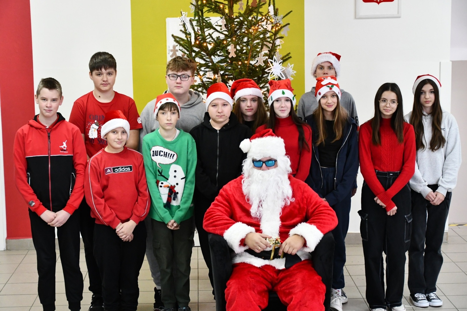Kochanemu Świętemu Mikołajowi i Jego sympatycznej Pomocnicy, bardzo dziękujemy za wizytę w naszej szkole i przecudowne prezenty.