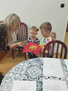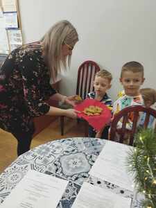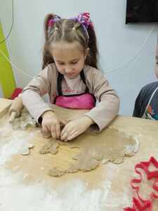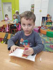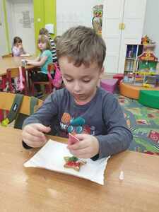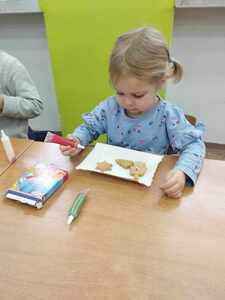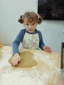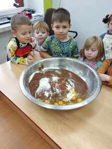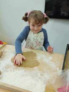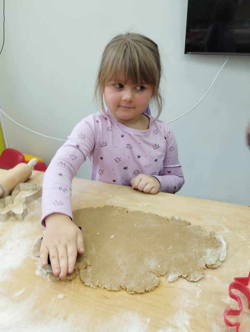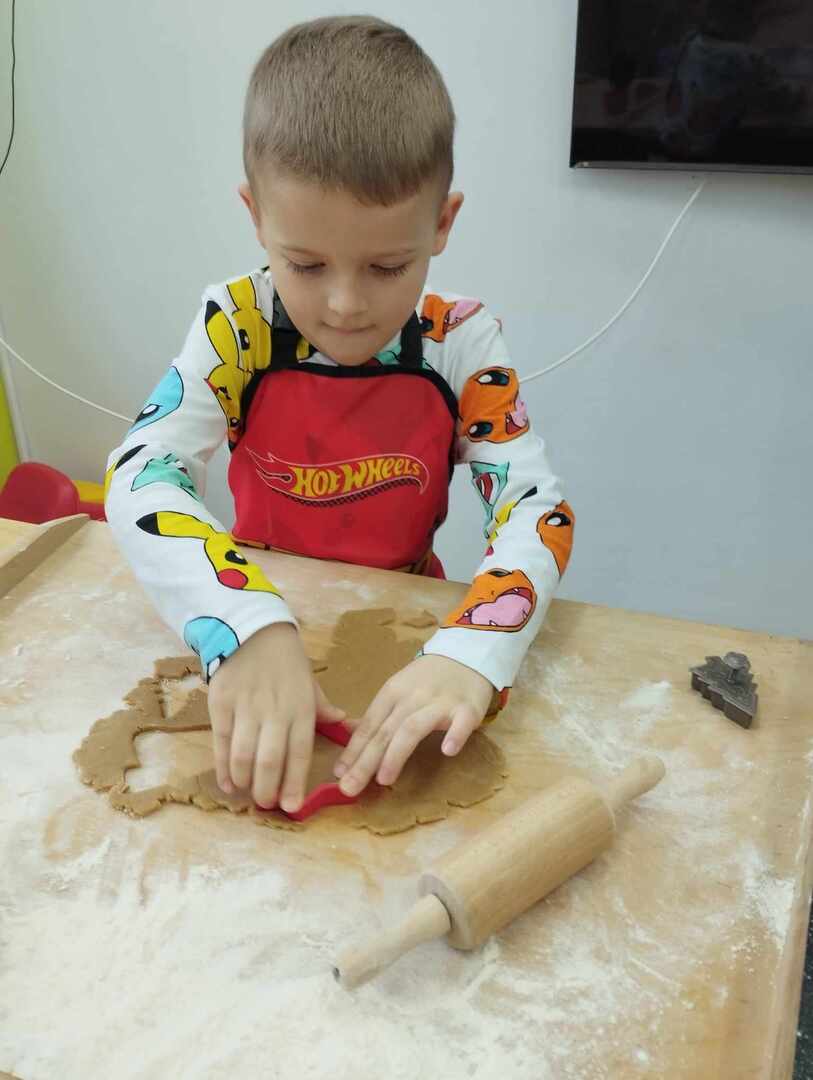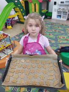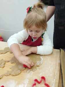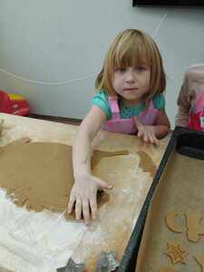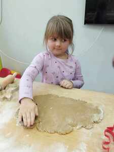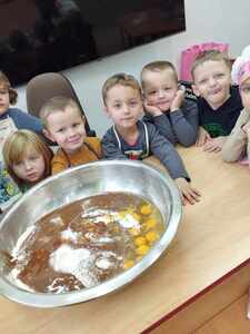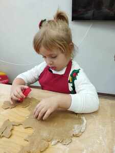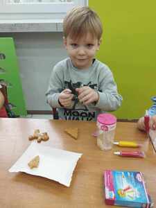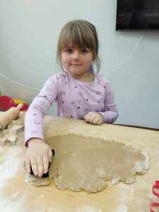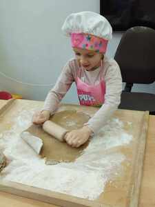 Pieczenie pierniczków, to tradycja, która na stałe wpisała się w nasz przedszkolny kalendarz. Od samego rana w sali panowało wielkie poruszenie. Dzieci stroiły się w kolorowe fartuszki i czepki, aby już za chwilę zabrać się do pracy. Z entuzjazmem i wielkim zaangażowaniem wałkowały ciasto i wykrawały przeróżne kształty ciasteczek. Gdy pierniczki piekły się w szkolnej kuchni, dzieci obejrzały film edukacyjny, opowiadający o tradycjach świątecznych. Przyszła w końcu ta pora, gdy dzieci mogły własnoręcznie zabrać się za dekorowanie pierników. Pomysłów było bez liku. Każde ciastko było inne, a jego wygląd i zapach, nie pozwoliły na długie powstrzymywanie się od degustacji. W natłoku pracy dzieci nie zapomniały o Pani dyrektor Ilonie Stolarz, którą poczęstowały swoimi wypiekami. Swoimi popisami kulinarnymi, przedszkolaki pochwaliły się również w domach, zabierając dla swoich najbliższych pięknie udekorowane ciastka. Mamy nadzieję, że wszystkim będą bardzo smakować