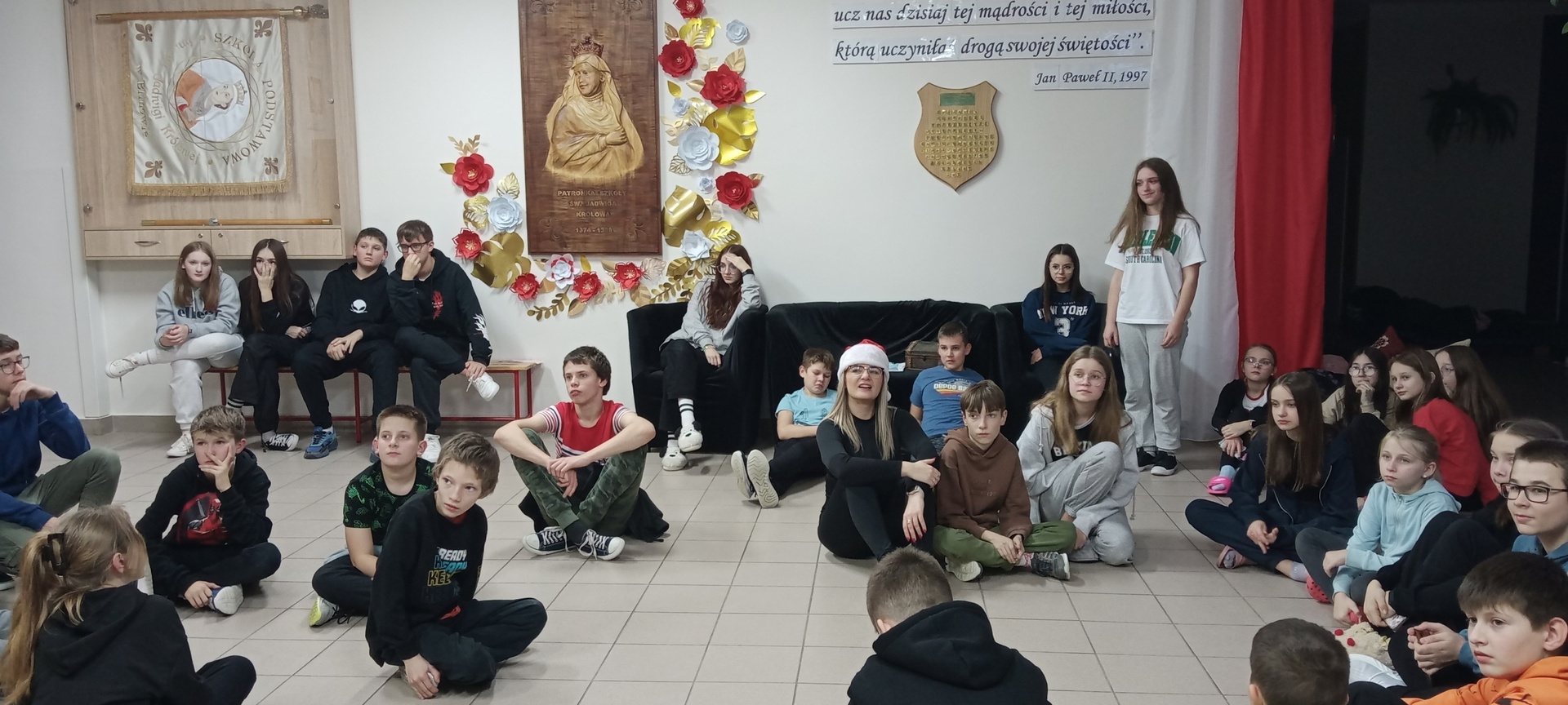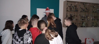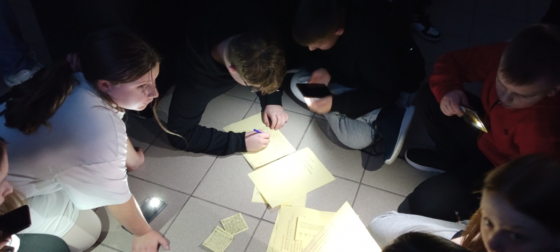 Uczniowie podzieleni na 4 grupy wraz z nauczycielami i Panem wójtem wyruszyli na poszukiwanie zaginionych prezentów🎁 świątecznych, skradzionych Świętemu Mikołajowi🎅, podążając za wskazówkami umieszczonymi w różnych zakątkach szkoły. W świetle latarek 🔦musieliśmy rozwiązywać zaszyfrowane informacje i poszukiwać kodów QR z zagadkami. Zaginionymi prezentami🎁 okazały się słodkości 🍬🍭podarowane z tej okazji przez Pana Wójta.