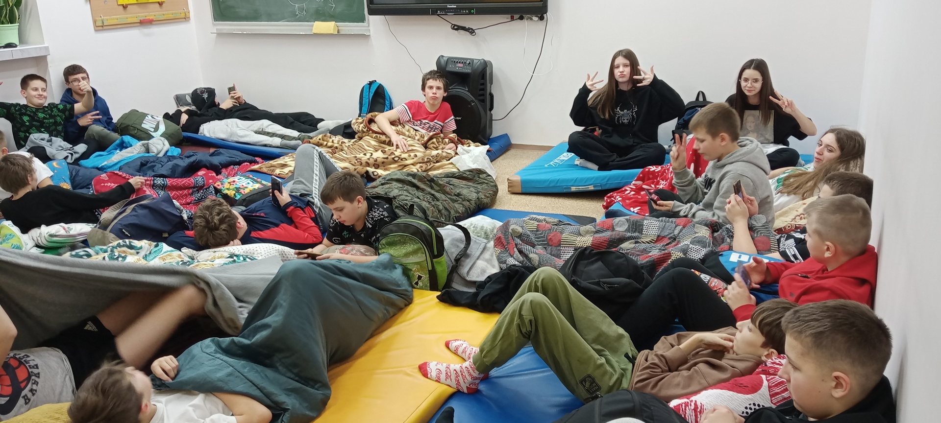 Na zakończenie nocy wszyscy zebraliśmy się, aby wspólnie obejrzeć jeszcze jeden film.