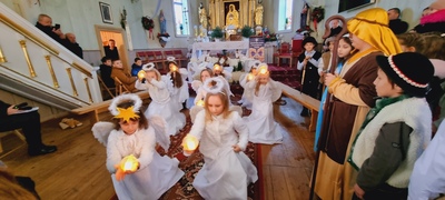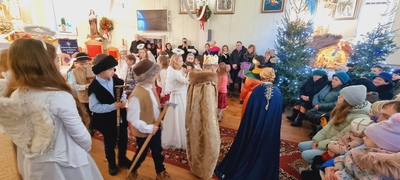 Jasełka wystawione przez uczniów w kościele parafialnym były prawdziwym przeżyciem ducha Bożego Narodzenia. Uczniowie, pod opieką Pani Agaty Szabat i Pani Moniki Reszki, z oddaniem i zaangażowaniem przedstawili tradycyjną historię narodzenia Pana Jezusa. Dzieci w pięknych kostiumach wcieliły się w postacie Maryi, Józefa, aniołów i pastuszków, tworząc wzruszający obraz Bożego Narodzenia. Widownia, składająca się z parafian i rodzin, podziwiała młodych aktorów, a występ uczniów w jasełkach nie tylko przyniósł radość, ale także przypomniał o istotnym znaczeniu Bożego Narodzenia.Takie wydarzenia kształtują wspólnotę i dodają magii okresu świątecznego. Dziękujemy za ciepłe przyjęcie, gromkie brawa i wszystkim Państwu życzymy wszystkiego dobrego na Nowy Rok.
