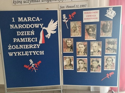 Aby uczcić pamięć tych wyjątkowych ludzi, została przygotowana gazetka okolicznościowa prezentująca sylwetki wybranych Żołnierzy Niezłomnych. Na lekcjach historii uczniowie klas IV-VIII obejrzeli film edukacyjny „Żołnierze Wyklęci”. W ten sposób nasza szkoła oddała hołd tym, którzy po II wojnie światowej przeciwstawili się narzuconej siłą władzy komunistycznej.