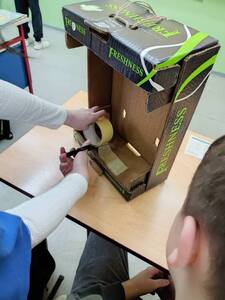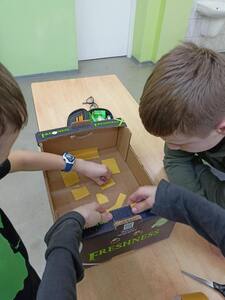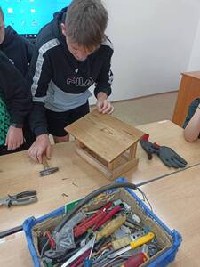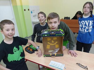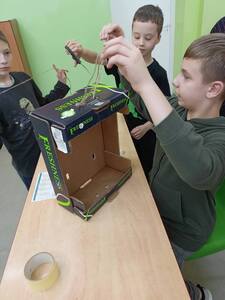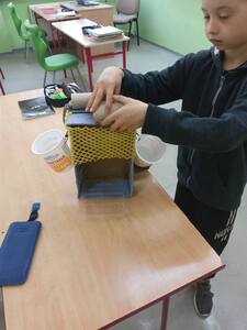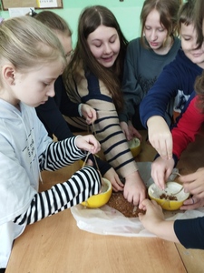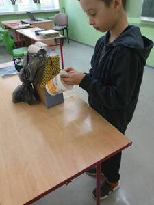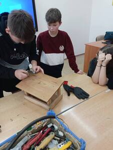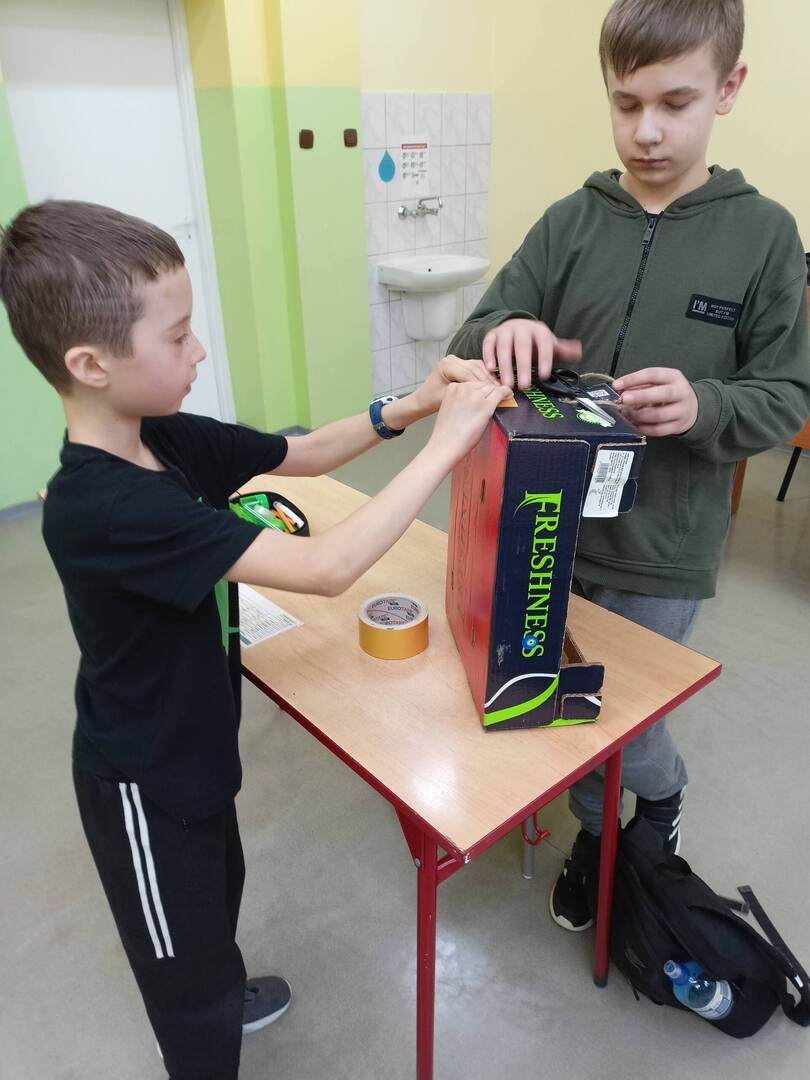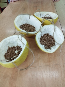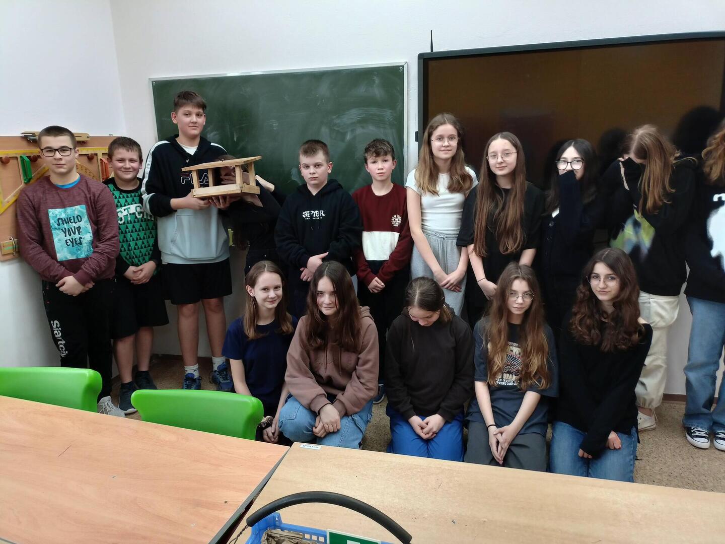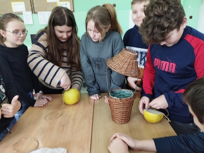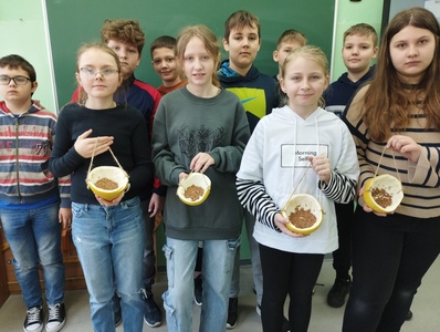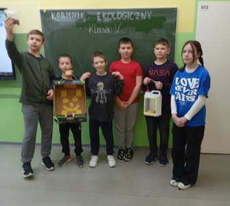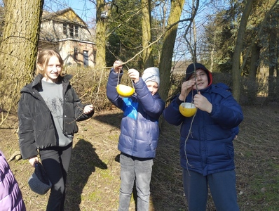 Uczniowie klas IV-VI podczas zajęć techniki wykonali ekologiczne karmniki. Do ich wykonania wykorzystali, przede wszystkim duże skórki po owocach pomelo, butelki plastikowe, kartony tekturowe, metalowe puszki oraz listewki z drzewa. Karmniki zostały zawieszone w szkolnym ogrodzie. Przez okres zimy przylatujące tu ptaki były dokarmiane przez młodsze dzieci. Pomaganie ptakom w przetrwaniu zimy kształtuje w dzieciach poczucie odpowiedzialności, obowiązkowości oraz wrażliwości na los zwierząt. Uczniowie zadbali o naszych skrzydlatych przyjaciół. Z surowców wtórnych i naturalnych materiałów przygotowali piękne eko karmniki. Teraz w karmnikach ptaki mogą znaleźć pyszne smakołyki.