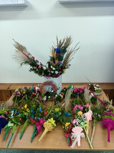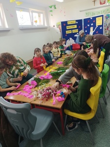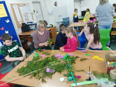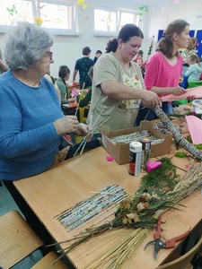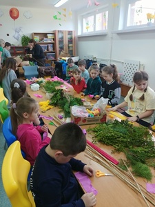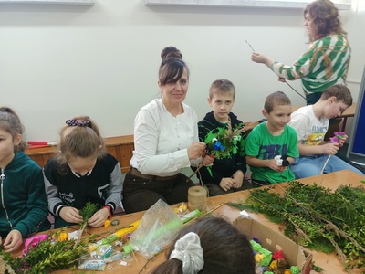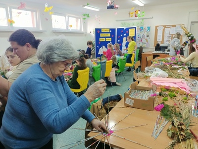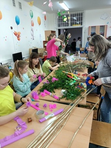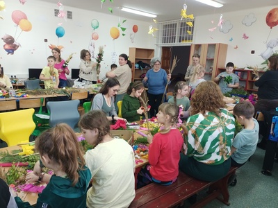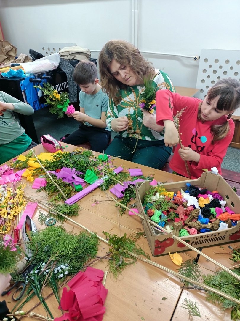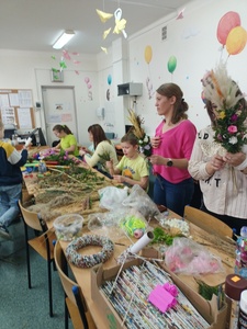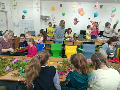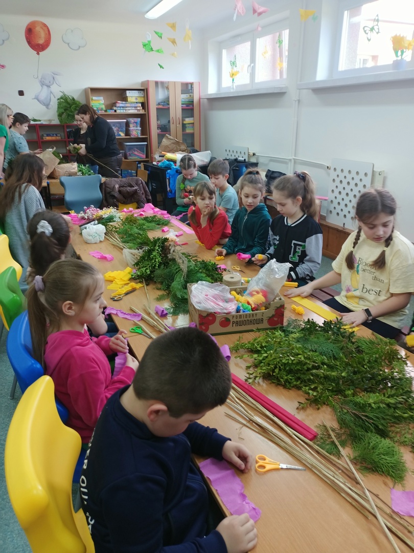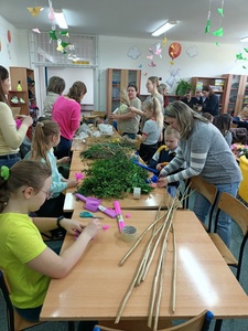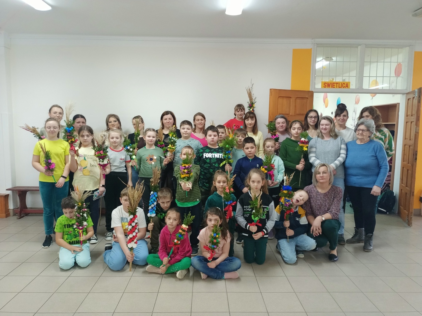 21 marca o godz. 9.00 odbyły się w naszej szkole ,,Warsztaty Wielkanocne”, na których dzieci z klas I- III wraz z rodzicami i wychowawczyniami, pod czujnym okiem Pań z KGW robiły palmy wielkanocne. Celem warsztatów była troska o zachowanie i pielęgnowanie tradycji związanych ze świętami wielkanocnymi, a także możliwość wspólnego spędzenia czasu. Wykonane palmy będzie można zakupić podczas Charytatywnego Kiermaszu w Niedzielę Palmową przed kościołem w Blinowie. Całkowity dochód przeznaczony będzie na leczenie i rehabilitację Ani- dziewczynki z sąsiedniej szkoły chorej na białaczkę. Bardzo miło było patrzeć na tak radosną, zorganizowaną i pracującą grupę. Wszystkie palmy wyszły cudownie! Serdecznie dziękujemy Paniom z KGW z Blinowa Pierwszego, które wykonane przez siebie piękne palmy przeznaczyły na nasz kiermasz. Dziękujemy niezastąpionej Pani Danucie Andrzejczak za pokaz i pomoc przy robieniu kwiatów oraz palm. Pani Katarzynie Abramek dziękujemy za stroiki świąteczne wykonane specjalnie na kiermasz. Moc podziękowań ślemy także do Rodziców oraz uczniów, którzy z wielkim zapałem pracowali nad wykonywaniem palm wielkanocnych. Dziękujemy Pani Dyrektor Ilonie Stolarz oraz wszystkim, którzy pomogli w organizacji warsztatów.
