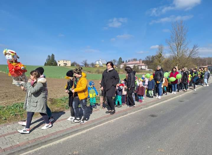 Uczniowie naszej szkoły wzięli udział w tradycyjnym spacerze z Marzanną, przygotowaną przez przedszkolaki. Spacer miał na celu powitanie wiosny oraz odesłanie zimy. Wydarzenie było okazją do integracji i wspólnej zabawy. Podczas spaceru uczniowie mieli okazję podziwiać pierwsze oznaki wiosny, takie jak kwitnące kwiaty i śpiewające ptaki. Najważniejszym momentem spaceru było symboliczne pożegnanie z zimą i powitanie wiosny.
