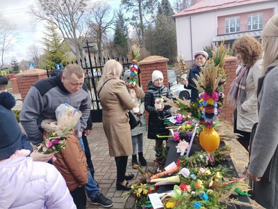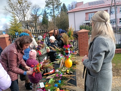 Pomagając, nie oczekujemy niczego w zamian, a często dostajemy o wiele więcej. 24 marca, w Niedzielę Palmową zorganizowany został przed naszym kościołem Charytatywny Kiermasz palm wielkanocnych. Palmy pochodziły z konkursu oraz warsztatów szkolnych. Całkowity dochód z kiermaszu przeznaczony będzie na leczenie i rehabilitację Ani- dziewczynki z sąsiedniej szkoły chorej na białaczkę.