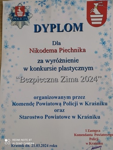 Konkurs, o tej ważnej tematyce, przeznaczony dla dzieci i młodzieży do lat 14, objęty patronatem Komendanta Powiatowego Policji w Kraśniku inspektora Jacka Figla i Starosty Kraśnickiego Pawła Kudrela został rozstrzygnięty w połowie marca.