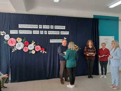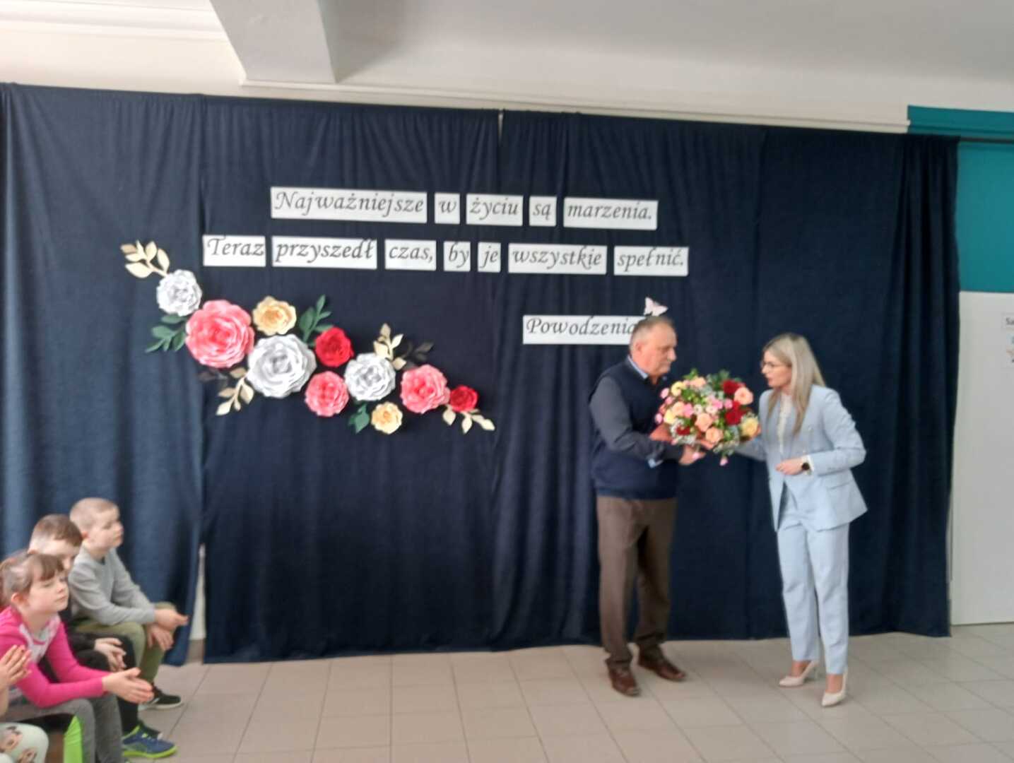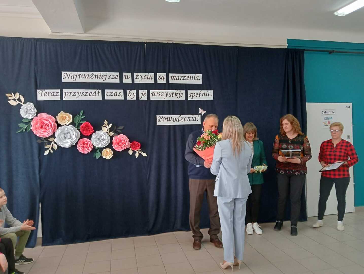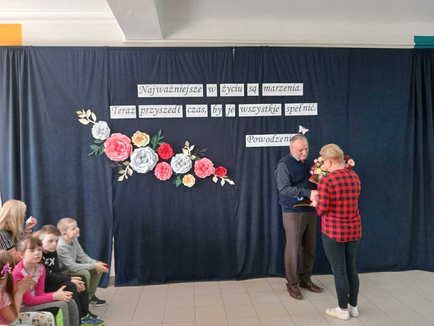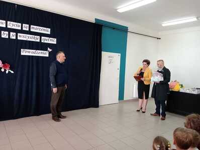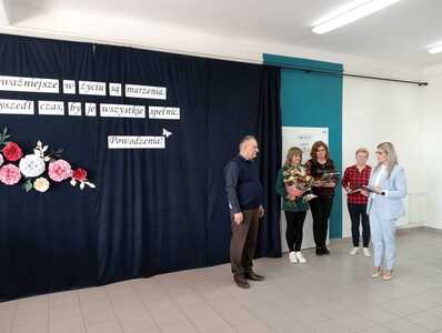 Na początku głos zabrała dyrektor szkoły Pani Ilona Stolarz, która w imieniu własnym, nauczycieli, pracowników, a także całej społeczności szkolnej wyraziła ogromną wdzięczność za wkład w rozwój uczniów i szkoły w Blinowie. Podziękowała za lata zaangażowania i poświęcenia oraz podkreśliła, że Pan Andrzej Białek był drogowskazem dla uczniów, a także kolegą i przełożonym dla nauczycieli i współpracowników. Życzyła również zdrowia oraz zasłużonego wypoczynku, pełnego radości i spełnienia.