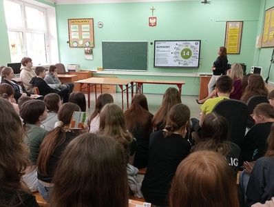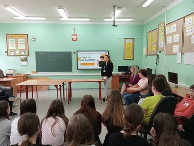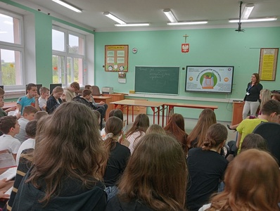Dnia 10 kwietnia 2024 r. w ramach realizacji Programu Edukacyjnego ,, Trzymaj formę” z uczniami klas IV-VIII spotkała się Pani Nina Zielińska-Dudek, pracownik Powiatowej Stacji Sanitarno Epidemiologicznej w Kraśniku. Tematem wiodącym spotkania była edukacja konsumencka. Jak uczyć dzieci odpowiedzialnej konsumpcji ? Na co zwracać uwagę robiąc zakupy ? Konsumentem jest każdy z nas – nawet już najmłodsze dzieci. W towarzystwie rodziców zdobywają pierwsze doświadczenia przy zakupie produktów i mają duży wpływ na podejmowane przez nich decyzje. Warto więc rozbudzać w nich zainteresowanie tą tematyką, tworzyć pierwsze skojarzenia związane z byciem świadomym konsumentem oraz kształtować odpowiednie postawy. Nauczenie dzieci odpowiedzialnej konsumpcji sprawi, że staną się bardziej świadomymi ludźmi. Te kluczowe wiadomości, które przekazała nam Pani pomogą uczniom w podejmowaniu świadomych wyborów konsumenckich . Spotkanie zakończono rozdaniem ulotek dotyczących poruszanych dziś tematów. Serdecznie dziękujemy Pani Ninie Zielińskiej -Dudek za podzielenie się z nami cennymi wskazówkami.