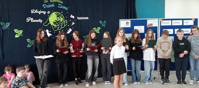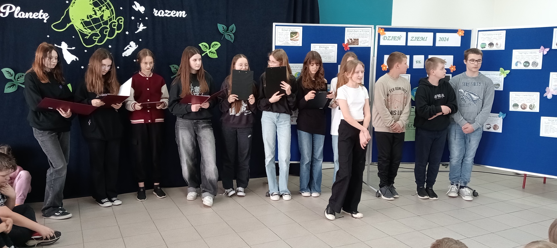 W 2024 roku hasłem przewodnim Światowego Dnia Ziemi jest "Planet vs. Plastics" czyli "Planeta vs. plastik". Organizatorzy chcą dzięki niemu zwrócić uwagę na konieczność ograniczenia produkcji i wykorzystania tworzyw sztucznych w trosce o zdrowie ludzi i planety. Żądają także zmniejszenia produkcji wszystkich tworzyw sztucznych o 60% do 2040 roku. Dzień Ziemi to międzynarodowe święto, które ma na celu promowanie postaw proekologicznych. Jest ono wspaniałą okazją by nagłośnić globalne problemy Ziemi. Coroczne inicjatywy ekologiczne w jakich bierze udział nasza szkoła są okazją do refleksji nad przyszłością naszej planety. Ich cel pozostaje niezmienny: promowanie proekologicznych postaw wśród dzieci i młodzieży, budowanie poczucia współodpowiedzialności za swoje najbliższe otoczenie, uświadamianie zagrożeń związanych z degradacją środowiska naturalnego. Z okazji Dnia Ziemi w naszej szkole odbył się apel. Uczniowie klasy IV i VI przygotowali krótką inscenizację, zaśpiewali piosenki: „Moja planeta”, „Kołysz nas Ziemio” i „Ziemia Wyspa Zielona”, których słowa są trafnym przesłaniem, aby ograniczyć swój negatywny wpływ w codziennym życiu.