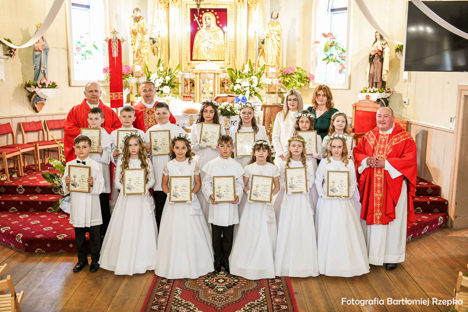 Tymi pięknymi słowami prośby dzieci o Błogosławieństwo Rodziców rozpoczęła się 19.05.2024r, o godz. 11.30 Uroczystość I Komunii Świętej w naszej Parafii św. Jana Chrzciciela w Blinowie. Czternaścioro dzieci po raz pierwszy przyjęło Komunię Świętą. W tej szczególnej uroczystości uczestniczyli oprócz rodziców i chrzestnych, dziadkowie, dalsza rodzina oraz zaproszeni kapłani: ks. Roman Bednarczyk i o.Józef Wcisło. Dzieciom towarzyszyły także pani dyrektor naszej szkoły- Ilona Stolarz oraz wychowawczyni klasy III- pani Agata Szabat. Do tego wyjątkowego święta dzieci przygotowywał oraz czuwał nad wszystkim ks. proboszcz- Piotr Wąsek.