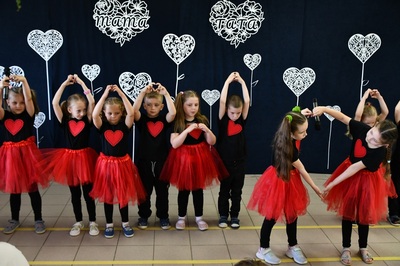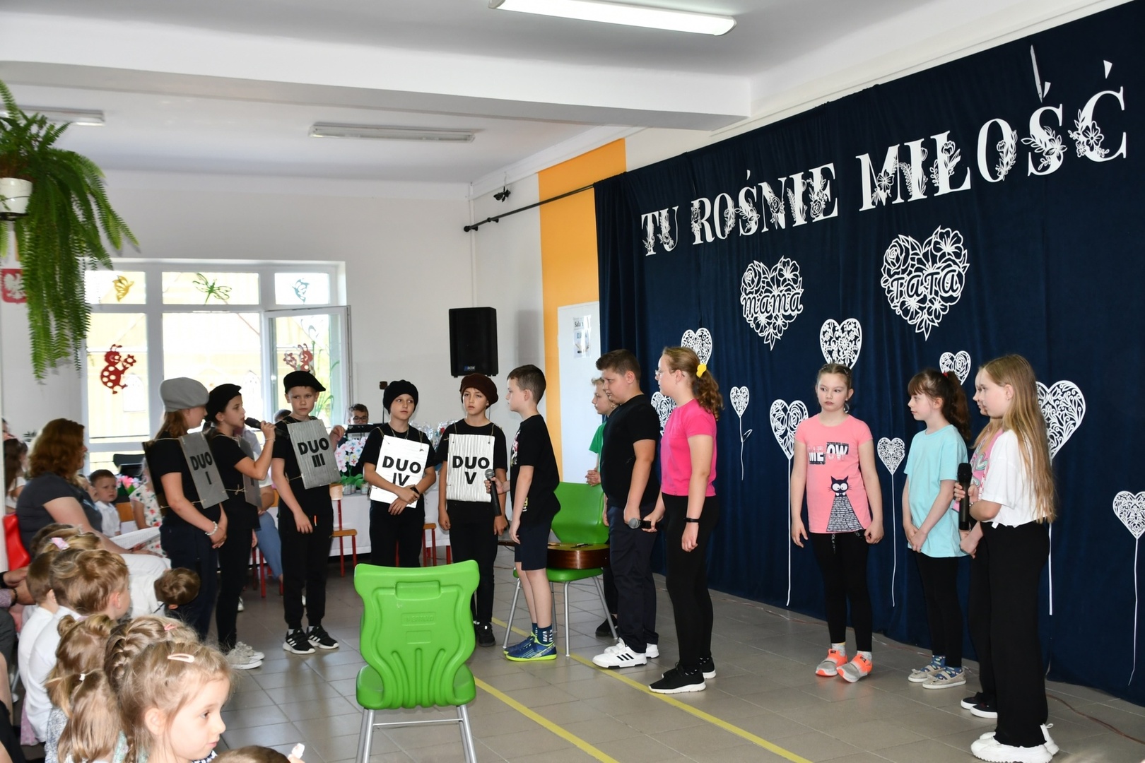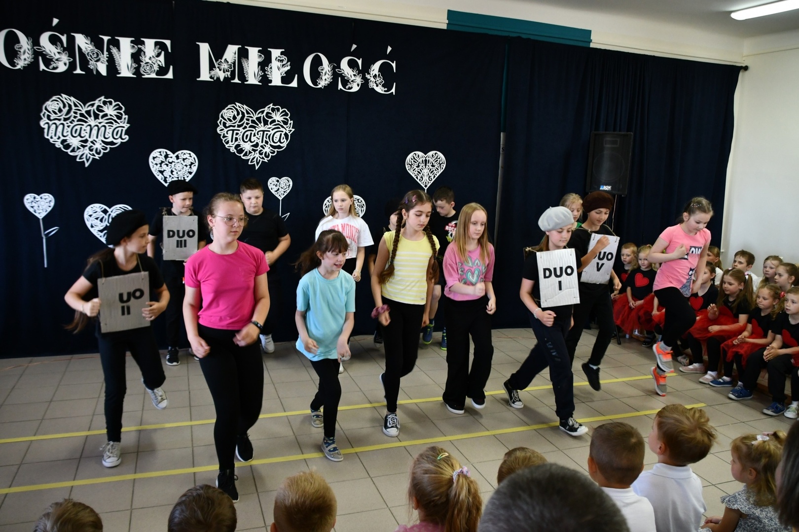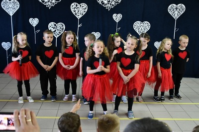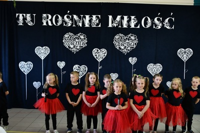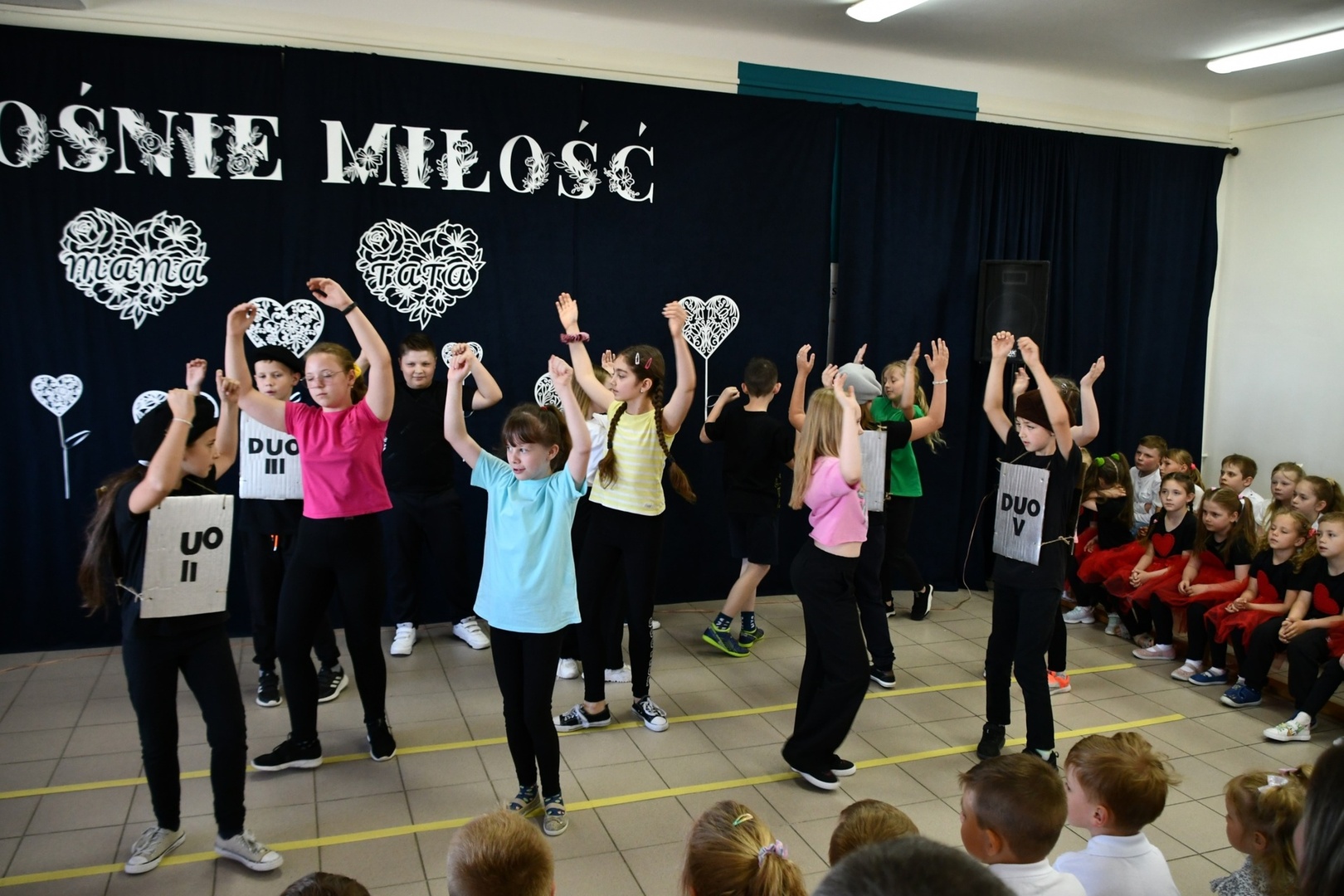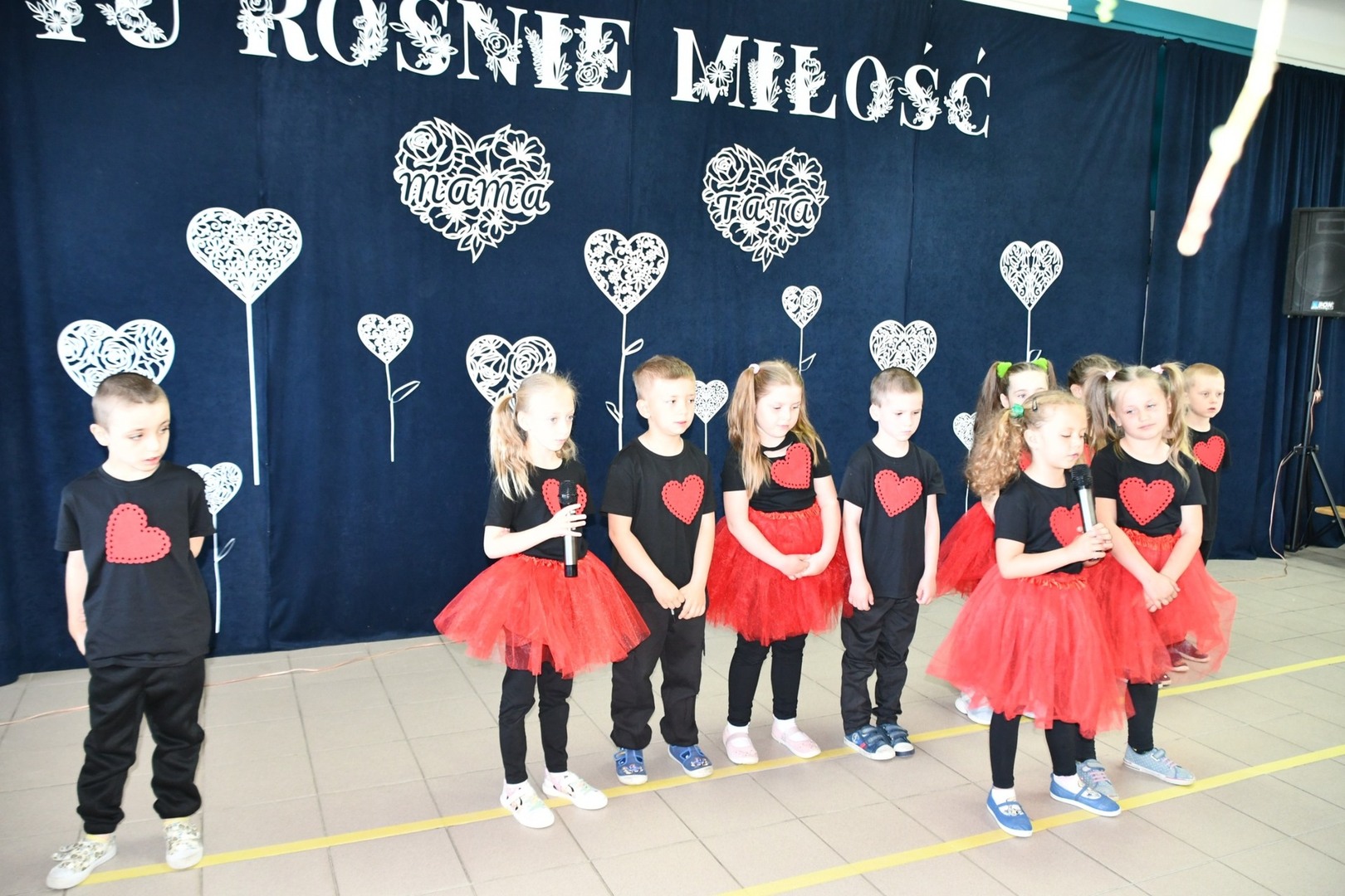 Dzieci z przedszkola, zerówki oraz klas I-III przygotowały bardzo bogaty program artystyczny. Występy rozpoczęły się od wierszyków i piosenek poświęconych mamom, w których dzieci wyrażały swoją miłość i wdzięczność. Następnie uczniowie zaprezentowali krótką scenkę teatralną, pokazując jak ważną rolę odgrywają w ich życiu mamy.