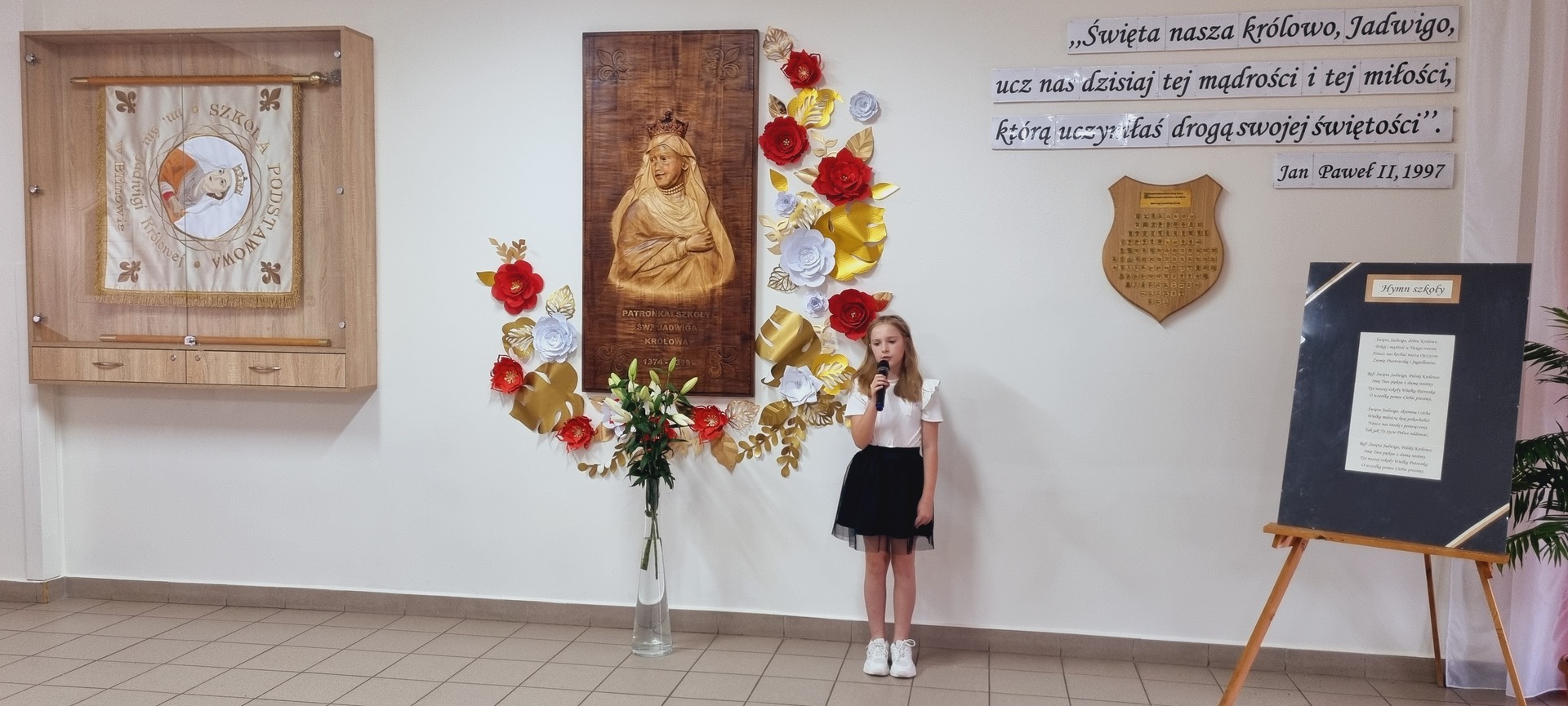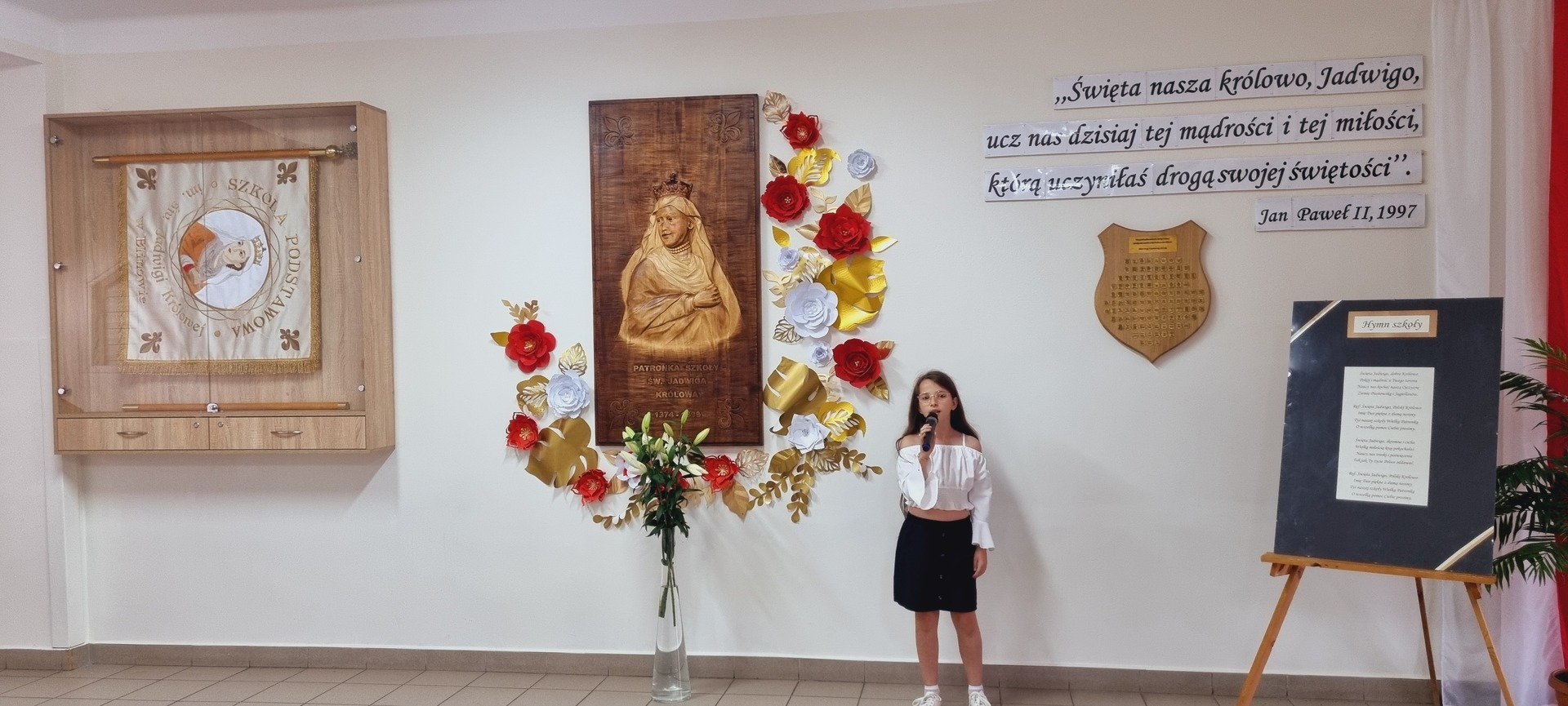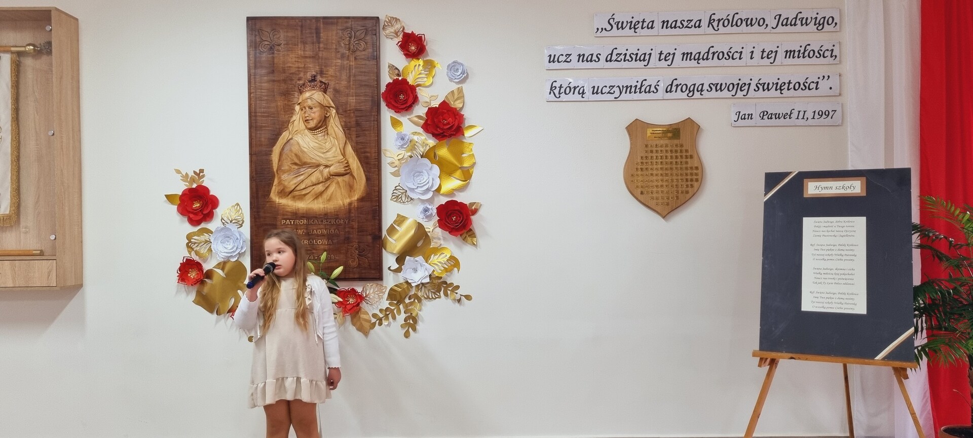 W związku ze zbliżającym się dniem wspomnienia naszej Patronki i trwającymi w Krakowie obchodami 650-lecia urodzin Świętej Jadwigi Królowej dnia 6 czerwca 2024 r. odbył się w naszej szkole ,,Konkurs na odśpiewanie Hymnu Szkoły”. W konkursie udział wzięły dzieci z Oddziału Przedszkolnego i uczniowie klas I-VI .