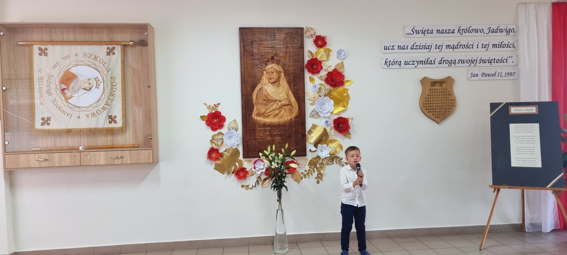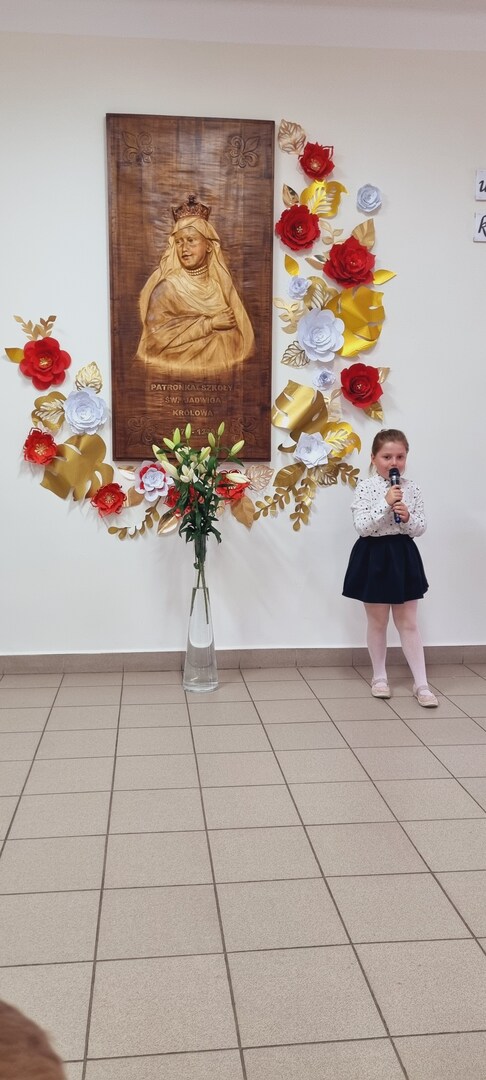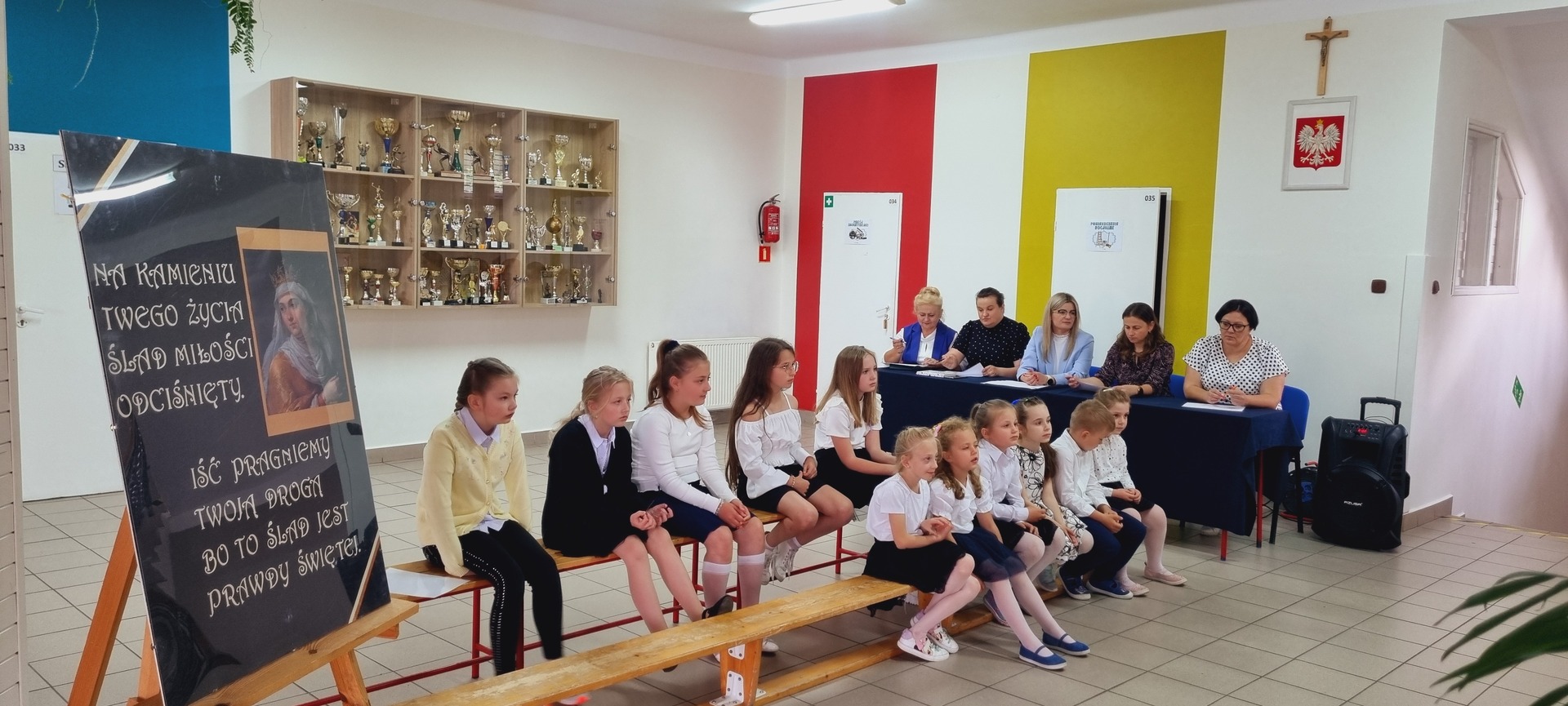 W związku ze zbliżającym się dniem wspomnienia naszej Patronki i trwającymi w Krakowie obchodami 650-lecia urodzin Świętej Jadwigi Królowej dnia 6 czerwca 2024 r. odbył się w naszej szkole ,,Konkurs na odśpiewanie Hymnu Szkoły”. W konkursie udział wzięły dzieci z Oddziału Przedszkolnego i uczniowie klas I-VI .