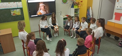 Ponadto, tego dnia małe dzieci malowały kolorowanki przedstawiające postać naszej Patronki, co dostarczyło im wiele radości i satysfakcji. Starsze dzieci natomiast wzięły na siebie odpowiedzialność za przekazywanie młodszym uczniom pięknych legend o św. Jadwidze Królowej. Dzięki temu młodsze klasy mogły poznać inspirującą historię naszej Patronki. Był to dzień pełen nauki, zabawy i wspólnego świętowania!