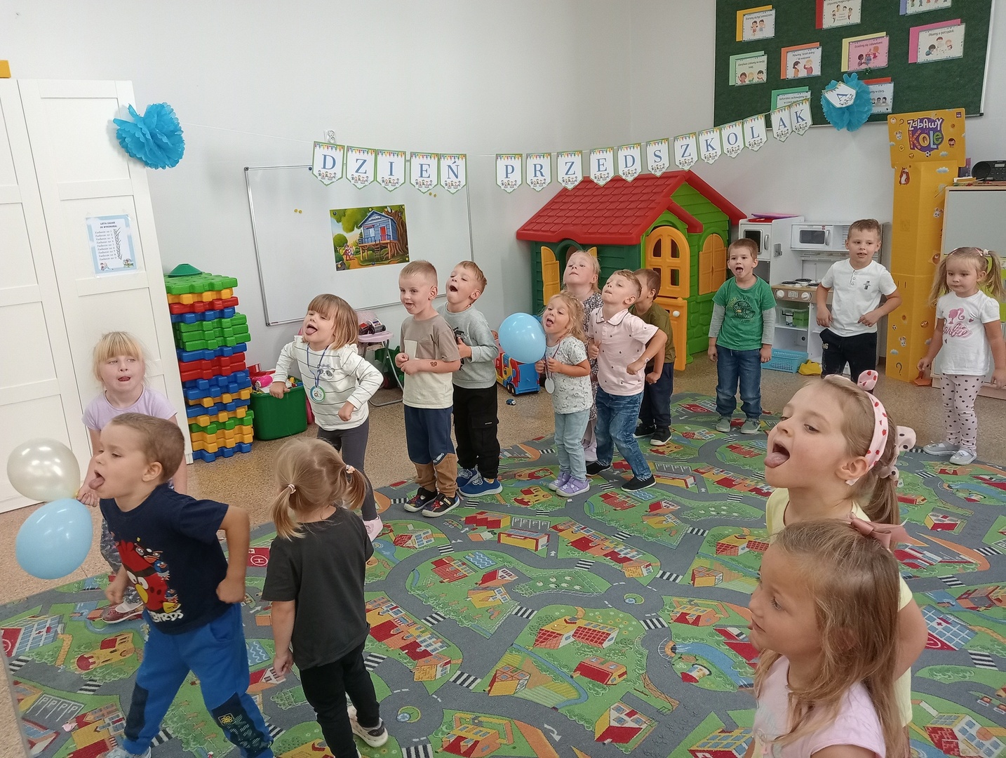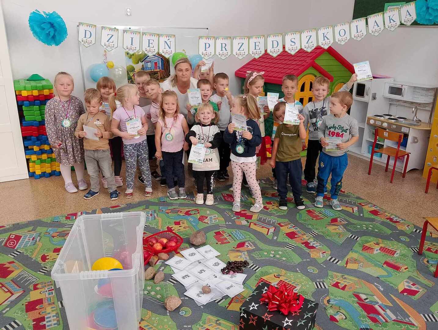 Dzisiaj, 20.09.2024r przedszkolaki z młodszej grupy obchodziły DZIEŃ PRZEDSZKOLAKA. Król Borys zaprosił listownie nasze dzieci na długą wyprawę do ,,Krainy Przedszkolandii".Ady dotrzeć do ów krainy dzieciaki musiały zmierzyć się z zadaniami, które przygotował król Borys. Odwaga i haryzma naszych wychowanków pomogła pomyślnie dotrzeć do celu. Po długiej i wyczerpującej podróży czekał na nasze pociechy słodki poczęstunek. Dziękujemy również Pani Dyrektor za słodkie upominki z okazji dzisiejszego święta. Pamiętajmy że uśmiech dziecka jest największym skarbem 😀😀😀
