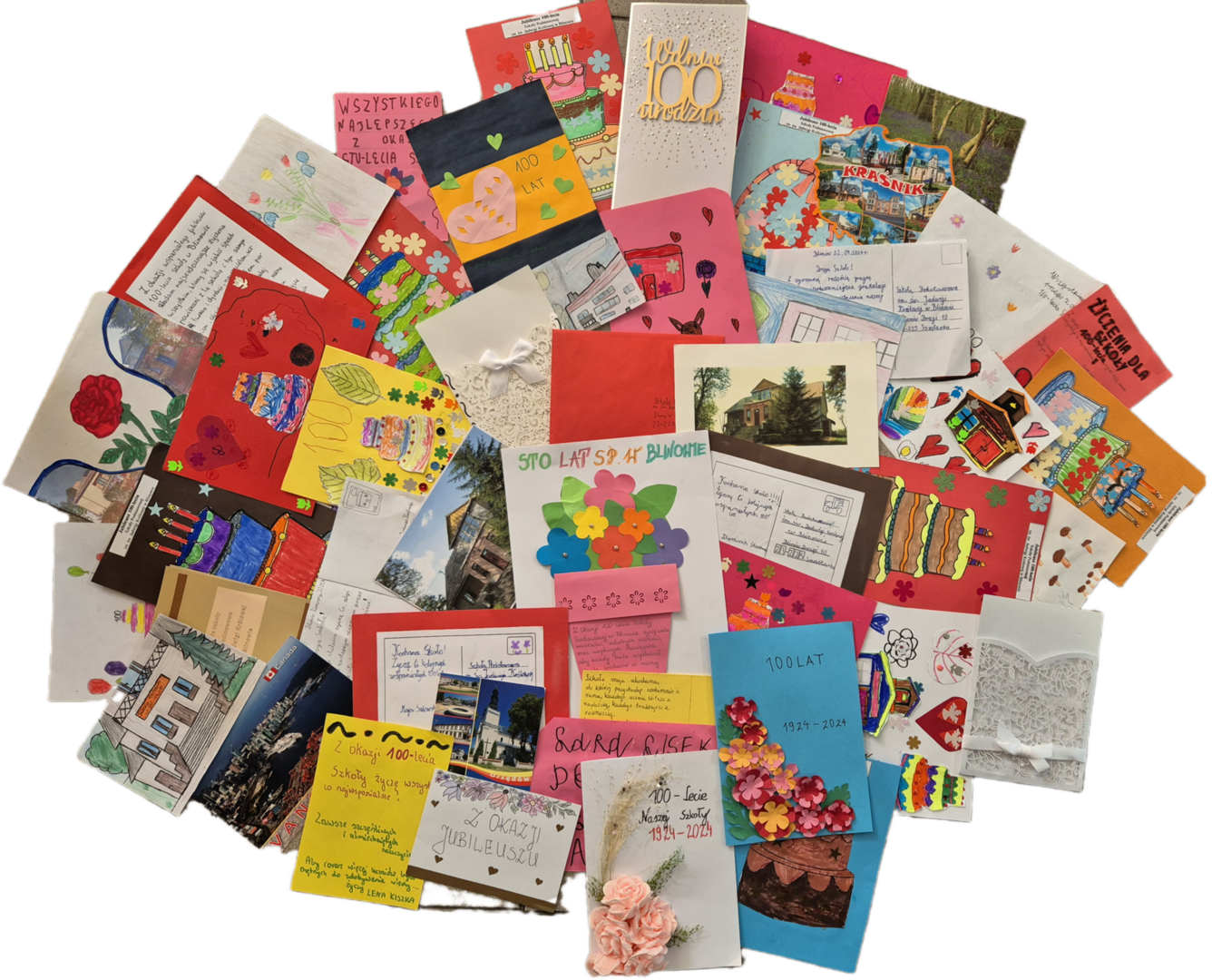 Z okazji 100-lecia naszej szkoły otrzymujemy liczne kartki z życzeniami. Każda z nich jest wyjątkowym dowodem uznania dla naszej placówki. Te piękne gesty są dla nas niezwykle cenne. Wszystkie otrzymane życzenia zostaną zaprezentowane w szkole, aby podzielić się nimi z całą społecznością szkolną.