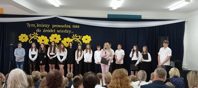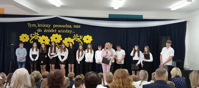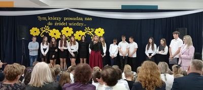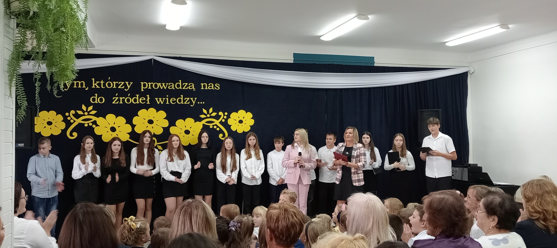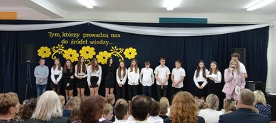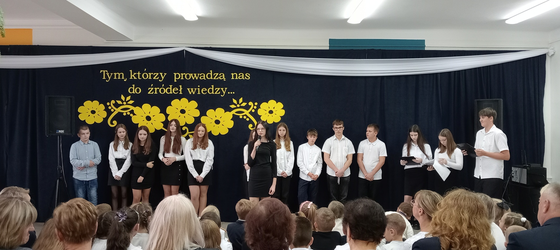 Z okazji Dnia Edukacji Narodowej klasa 7 przygotowała wyjątkowe przedstawienie, które podzielone było na dwie części: oficjalną oraz humorystyczną. W tej drugiej mogliśmy usłyszeć muzyczne hity dedykowane naszym pedagogom, co wywołało wiele uśmiechów!😊