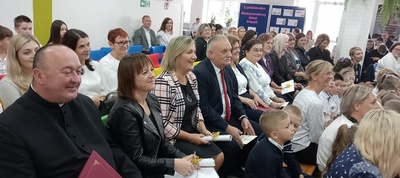 Następnie głos zabrała Pani Wójt Elżbieta Kowalczyk, która złożyła życzenia całej społeczności szkolnej oraz uhonorowała Panią Dyrektor nagrodą.