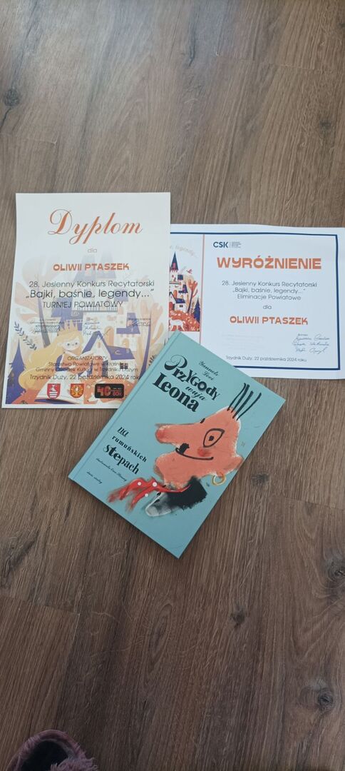 W eliminacjach powiatowych naszą szkołę reprezentowała Oliwia Ptaszek, uczennica klasy 4. Choć poziom występów był bardzo wysoki Oliwia otrzymała wyróżnienie wraz dyplomem i nagrodą książkową. Jesteśmy dumni i gratulujemy !