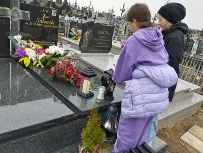 Wyjście poprzedziło przygotowanie kwiatów, a także rozmowa dotycząca odpowiedniego zachowania na cmentarzu. Po zapaleniu zniczy i złożeniu kwiatów wspólną modlitwą uczciliśmy pamięć zmarłych. Była to ważna lekcja wychowania rodzinnego, obywatelskiego i patriotycznego dla naszych uczniów.