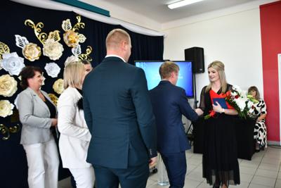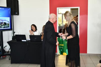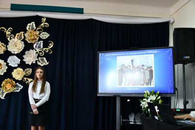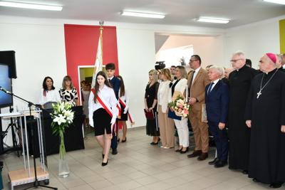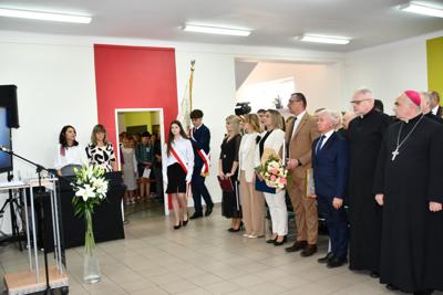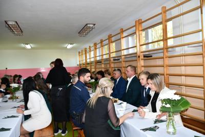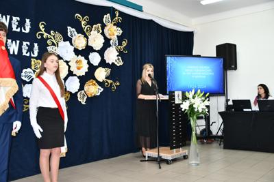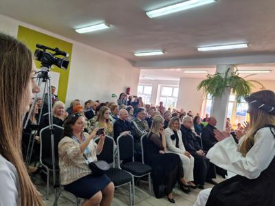 Część oficjalną uroczystości, którą na wysokim poziomie poprowadziły p. M. Reszka i p. A. Szabat zakończyło odśpiewanie hymnu szkoły, odprowadzenie pocztu sztandarowego oraz wystąpienia zaproszonych gości, którzy złożyli okolicznościowe życzenia, przekazali upominki i podzielili się osobistymi refleksjami i przeżyciami z czasów edukacji w szkole. Podniosła atmosfera i ciekawie przekazywane treści wystąpień i wspomnień sprawiły, że nikt nie odczuwał znużenia z faktu upływającego czasu trwania uroczystości.
