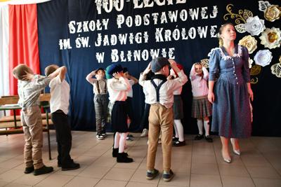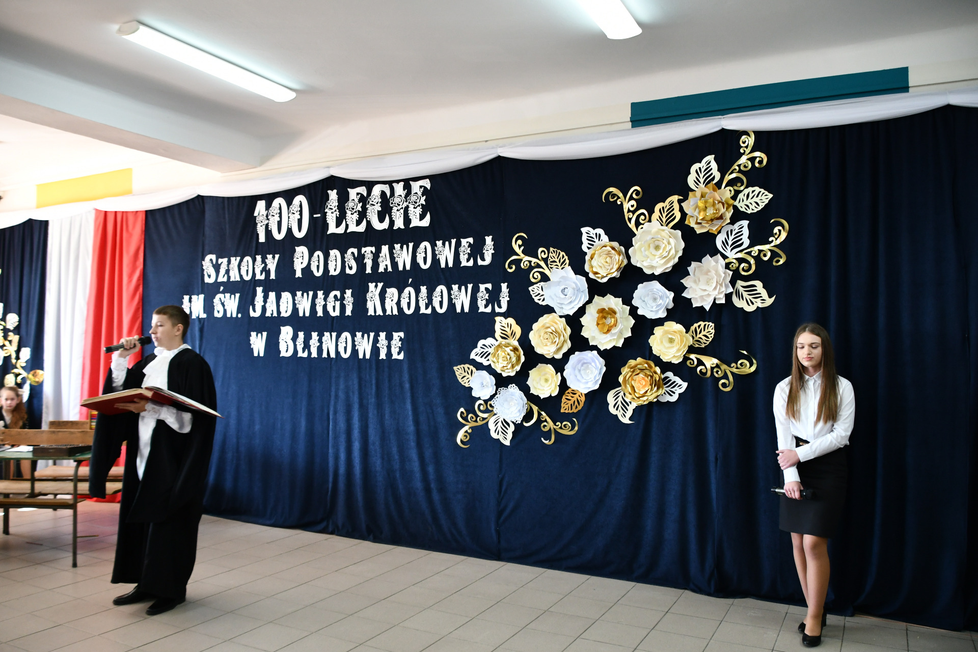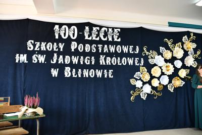 Piątek 25 października 2024 roku - kolejny słoneczny dzień tegorocznej jesieni - w Blinowie przebiegał w szczególnie uroczystej atmosferze, gdyż Szkoła Podstawowa im. Św. Jadwigi Królowej obchodziła zacny jubileusz 100-lecia istnienia.