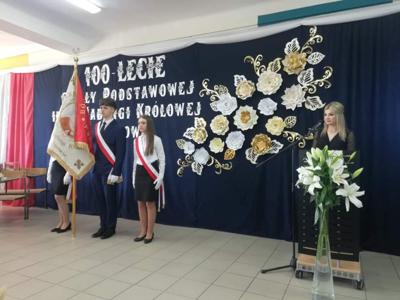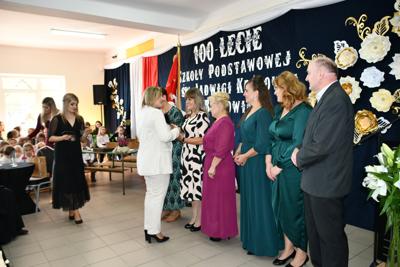 Nie zapomniano o złożeniu podziękowań wszystkim darczyńcom, którzy przyczynili się do realizacji obchodów 100-lecia szkoły. Niewątpliwie miłym i słodkim akcentem na zakończenie było wniesienie tortu urodzinowego przy huku petard oraz zaproszenie wszystkich uczestników na poczęstunek.