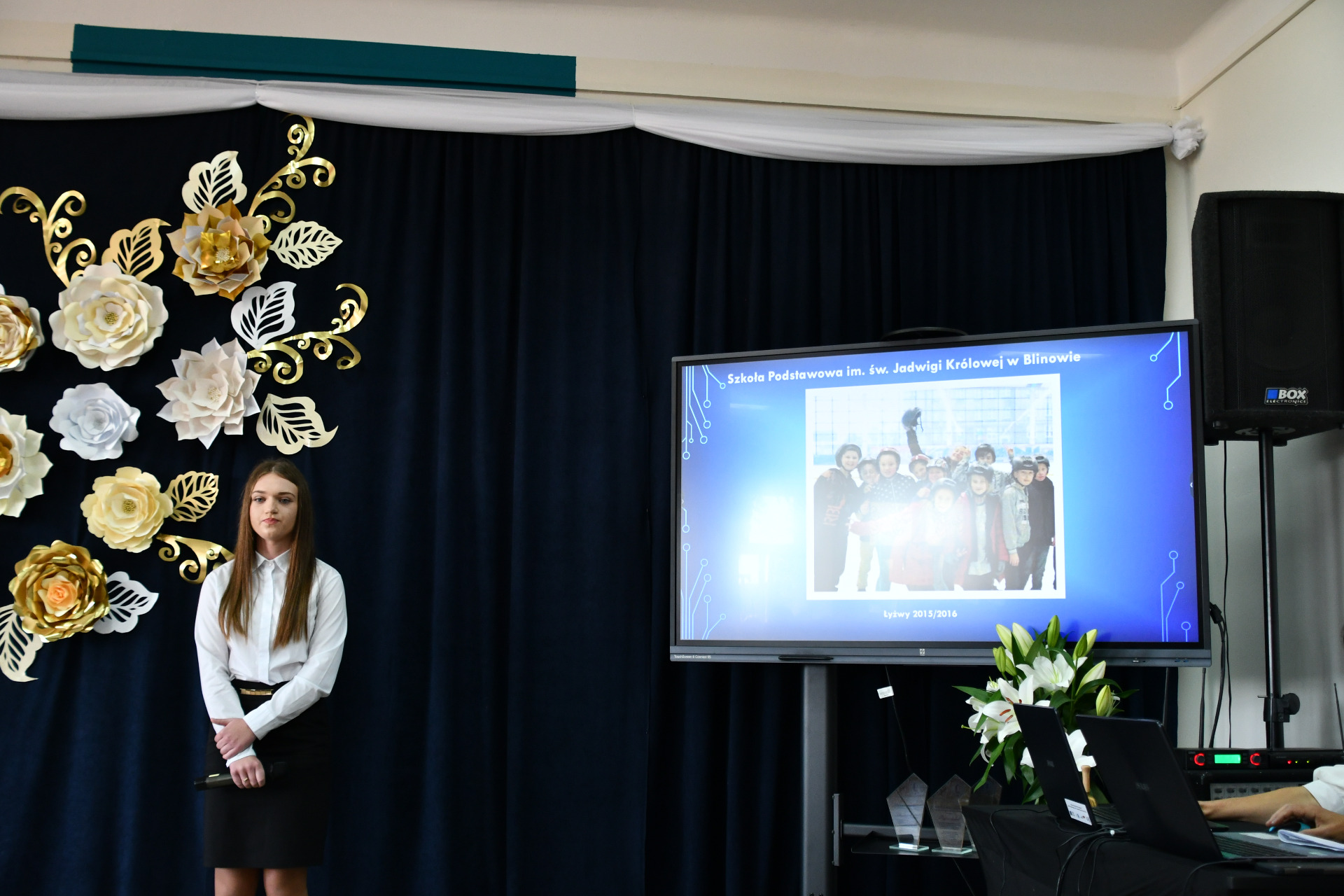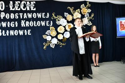 Część oficjalną uroczystości rozpoczęła dyrektor szkoły p. Ilona Stolarz, która serdecznie przywitała wszystkich uczestników . W swoim wystąpieniu skupiła się na podkreśleniu roli szkoły w środowisku lokalnym. Zaznaczyła, że szkoła jest miejscem, gdzie najważniejszy jest uczeń, duszą szkoły są nauczyciele, wsparciem rodzice a dumą absolwenci. Z wielką wdzięcznością skierowała podziękowania do wszystkich, którzy przyczynili się do rozwoju blinowskiej placówki : byłych dyrektorów, nauczycieli, pracowników obsługi, rodziców, mieszkańców Blinowa i okolicznych miejscowości oraz ludzi dobrej woli, którzy bezinteresownie wspierają finansowe potrzeby szkoły. Minutą ciszy uczczono pamięć tych wszystkich zmarłych nauczycieli, pracowników i uczniów szkoły, którzy zostawili trwały ślad w naszej społeczności.