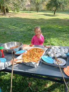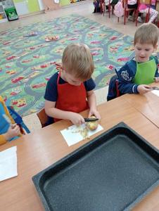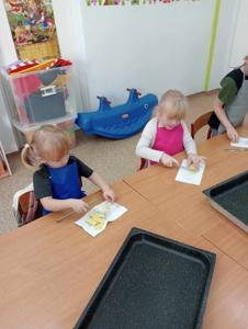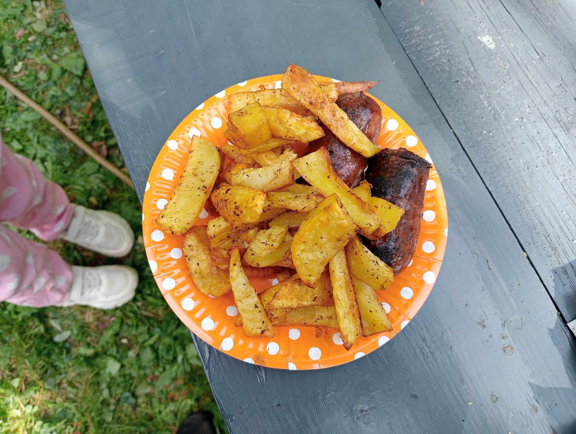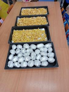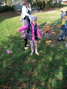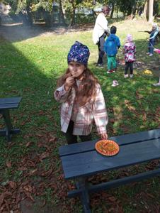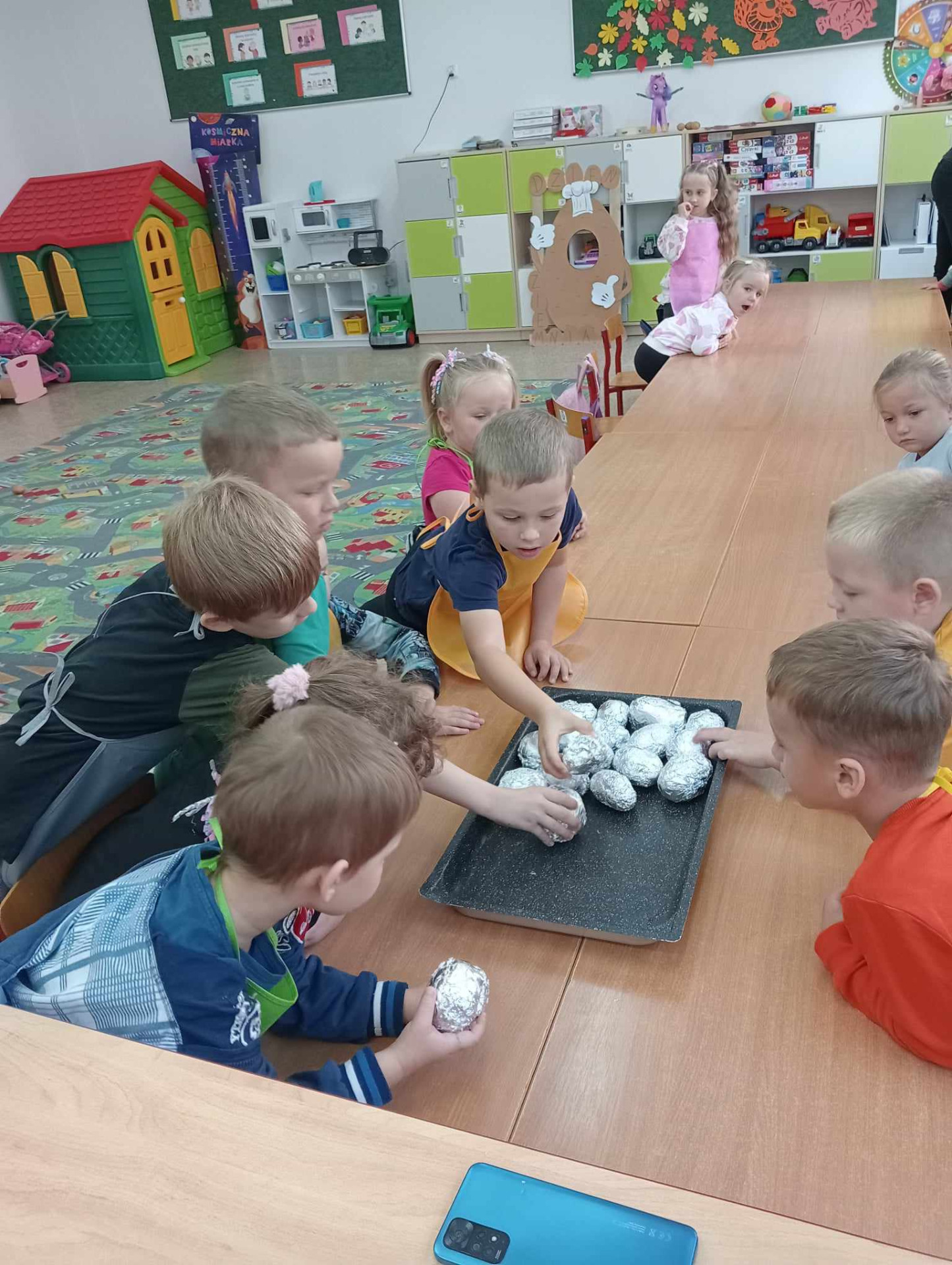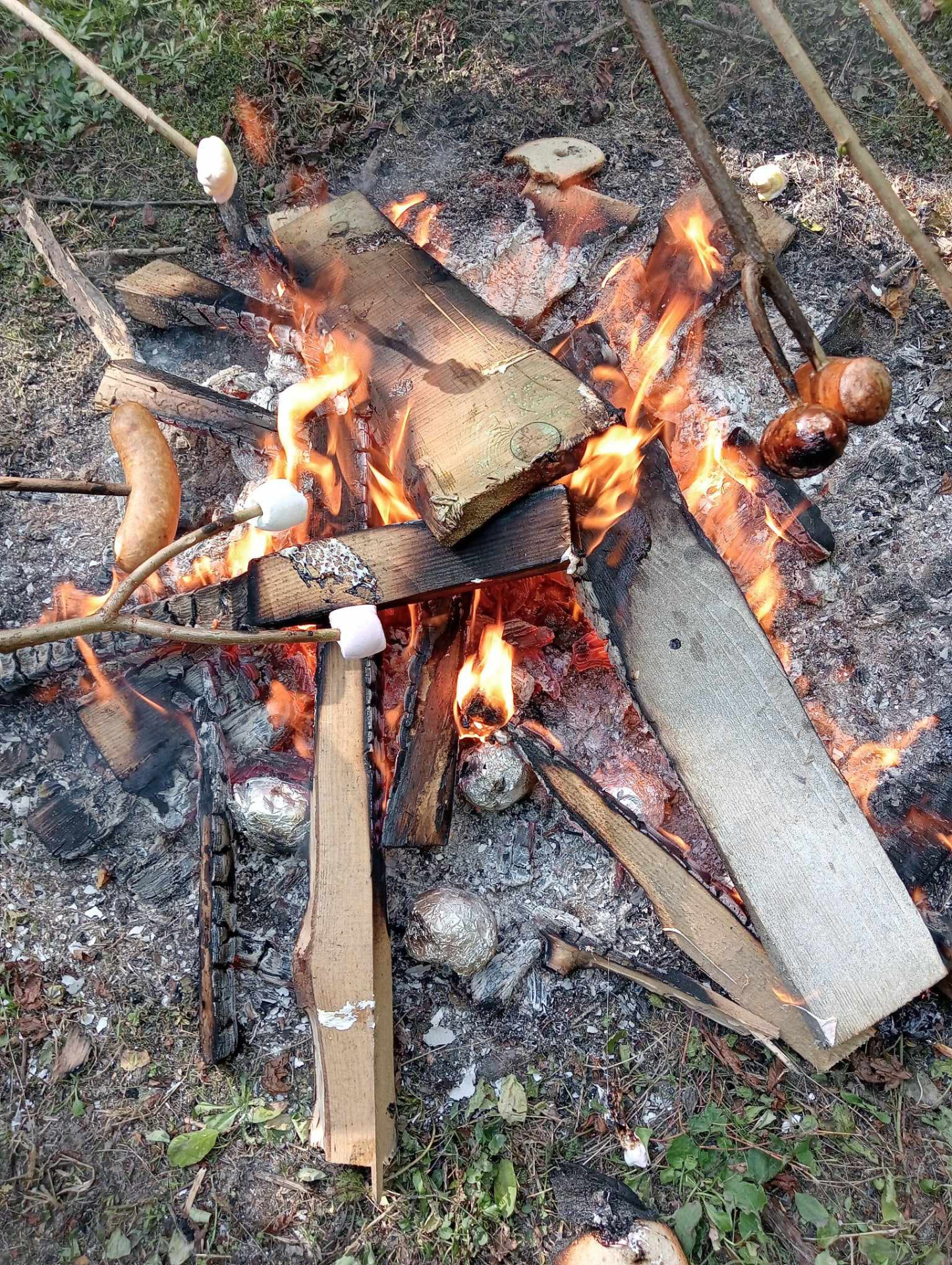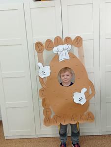 Dzieci poznały historię ziemniaka, dowiedziały się jakie potrawy można z niego przygotować oraz pokolorowały sylwetę ziemniaka Ziemowita. W dobrych humorach, wsłuchując się w słowa piosenki🎼 o bohaterze dnia, przedszkolaki zabrały się do przygotowania opiekanych ziemniaków, które w połączeniu z samodzielnie upieczoną kiełbaską na ognisku smakowały wyborowo.