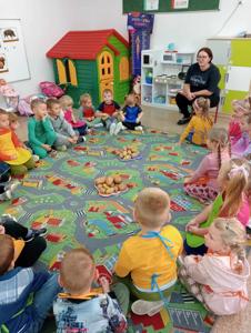 Dzieci z oddziału przedszkolnego obchodząc Święto Pieczonego Ziemniaka rozpoczęły tym samym realizację projektu edukacyjnego #Witaminki.