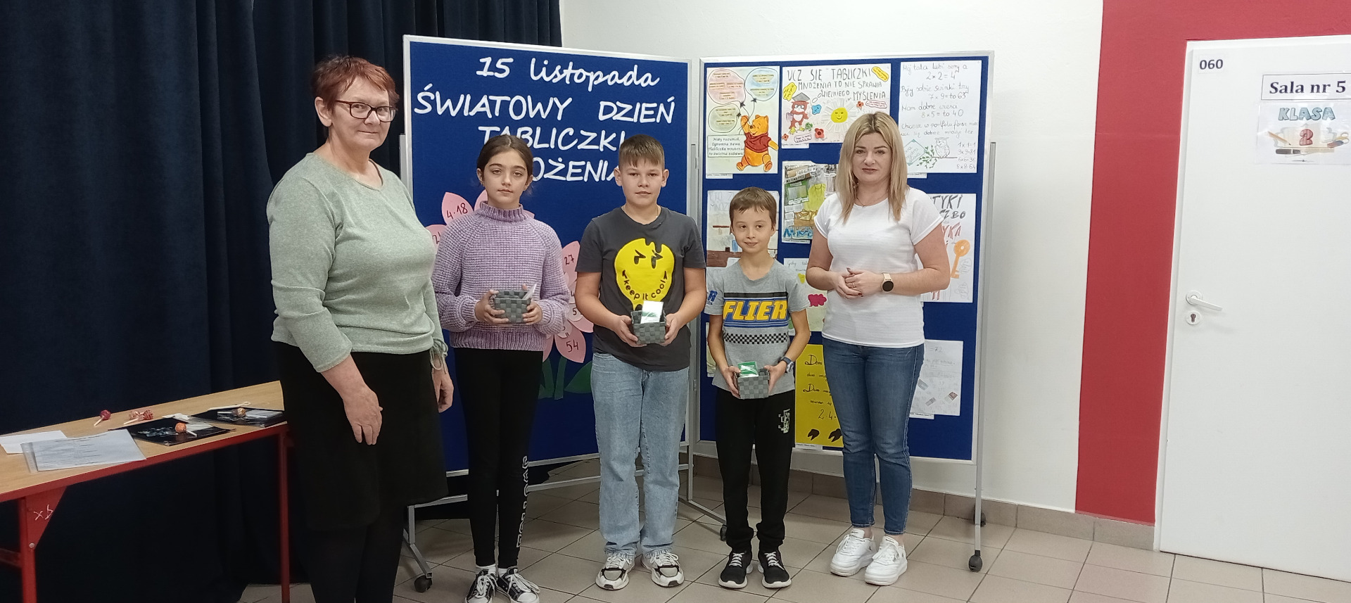 15 listopada z okazji Światowego Dnia Tabliczki Mnożenia, nasi uczniowie na lekcji matematyki zmagali się z jej znajomością. Po pierwszym etapie, który pisali wszyscy uczniowie, wyłoniono grupę, która z wynikiem 80% i więcej przeszła do kolejnego. W drugim etapie wyłoniono zwycięzcę. Bezkonkurencyjnym mistrzem tabliczki mnożenia został Mateusz Wieleba z klasy 6, który w obu etapach nie popełnił żadnego błędu.