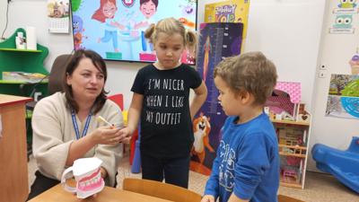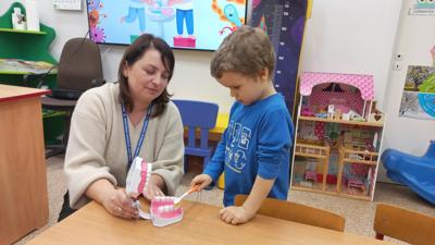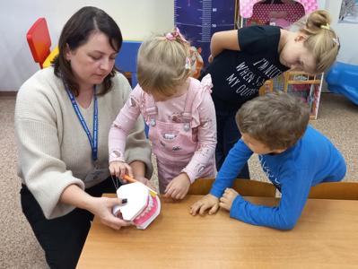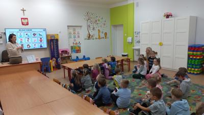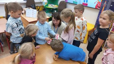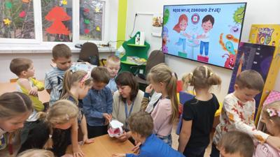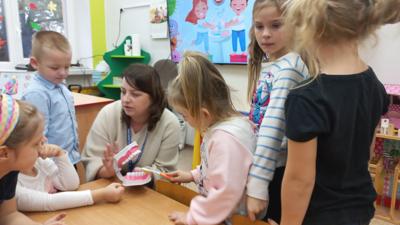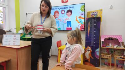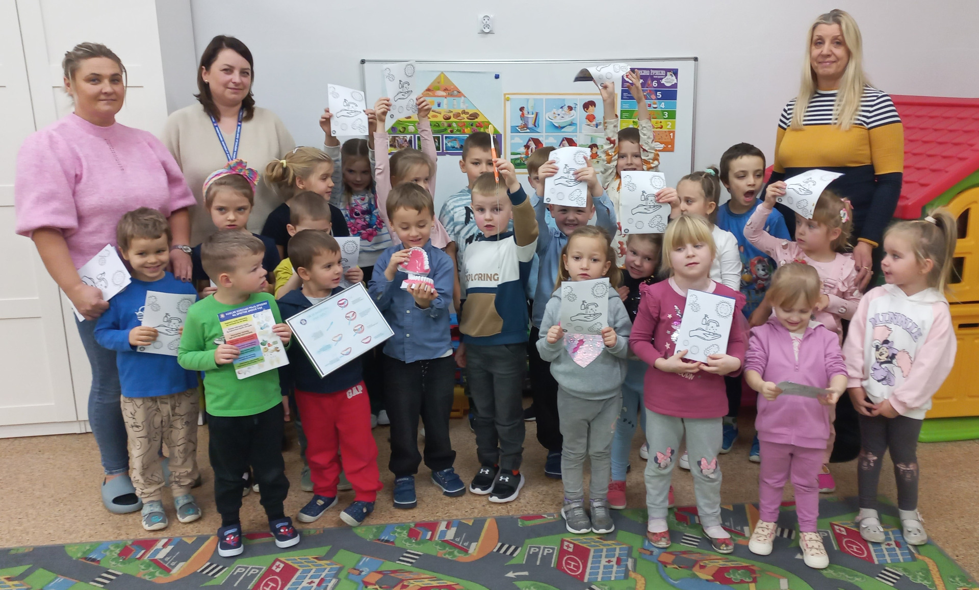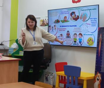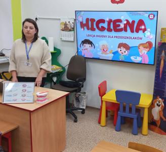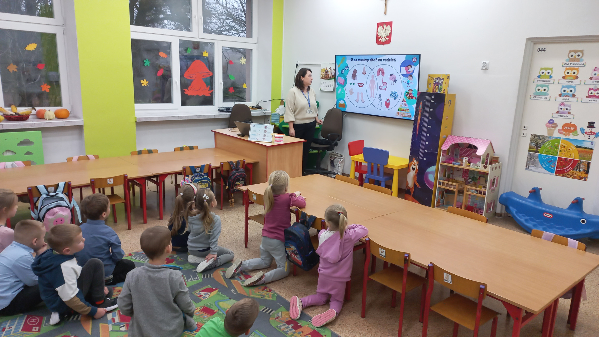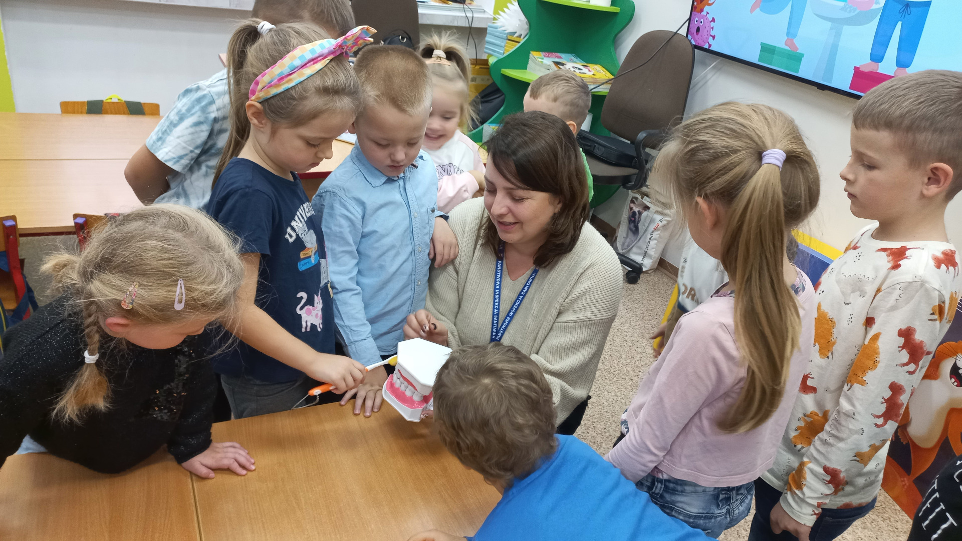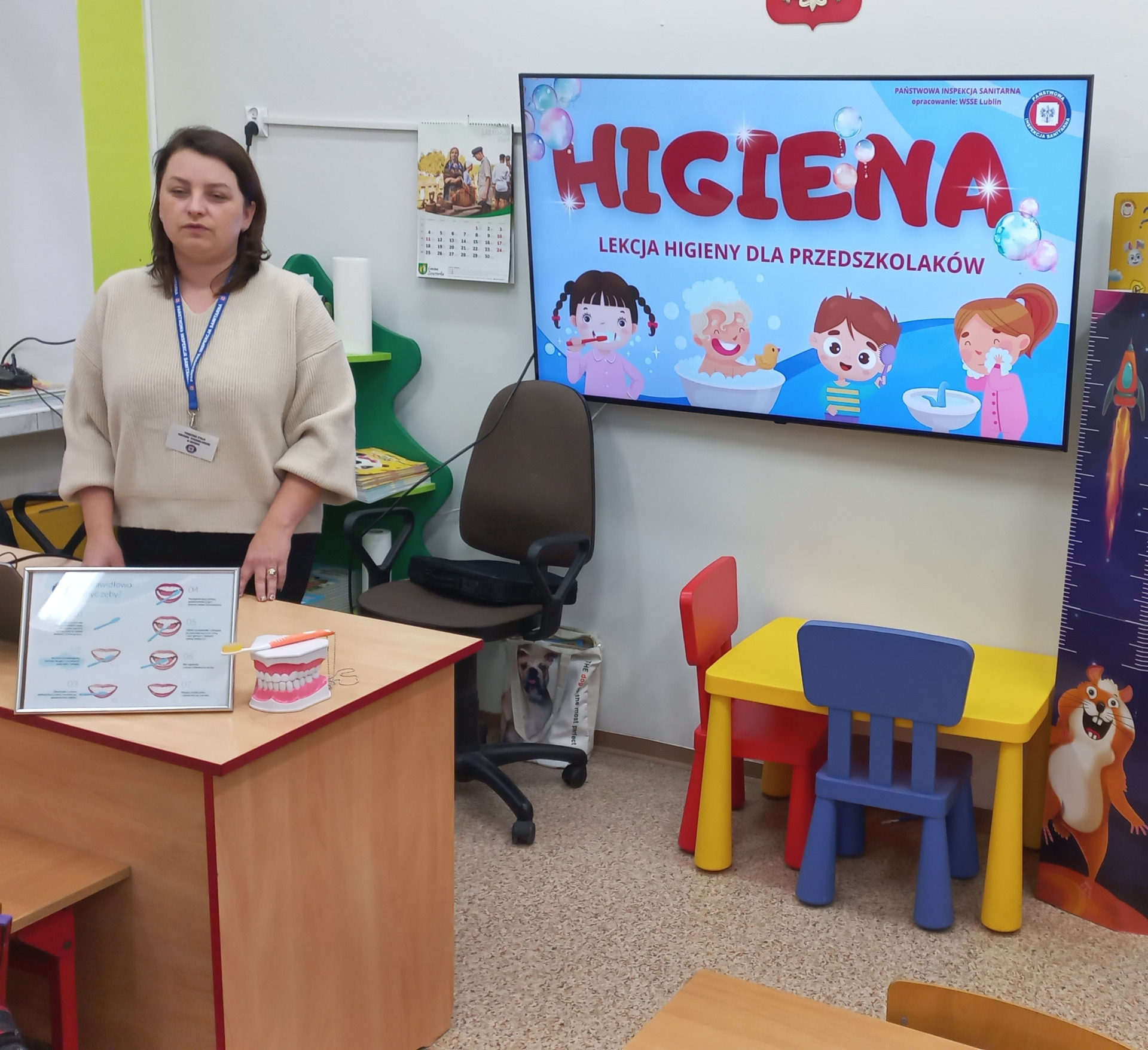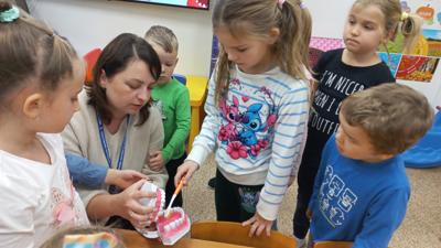 20 listopada, nasze przedszkole odwiedziła Pani Nina Zielińska – Dudek z Powiatowej Stacji Sanitarno – Epidemiologicznej w Kraśniku. Jej wiedza, profesjonalizm oraz forma przekazu, poparta obrazem w postaci prezentacji multimedialnej, pozwoliła nam wzbogacić i usystematyzować nasze dotychczasowe wiadomości. Już wiemy jak dbać o czystość całego ciała, w jaki sposób przenoszą się choroby i jak im zapobiegać, znamy nawyki, które zdrowiu służą i czego należy bezwzględnie unikać. Wiemy również, że dbałość o siebie to nie tylko o to, co na zewnątrz, ale też w środku, nasze układy i organy. Niezwykle ważnym elementem higieny jest również dbałość o jamę ustną, której instruktaż właściwej pielęgnacji umożliwił zaprezentowany fantom.