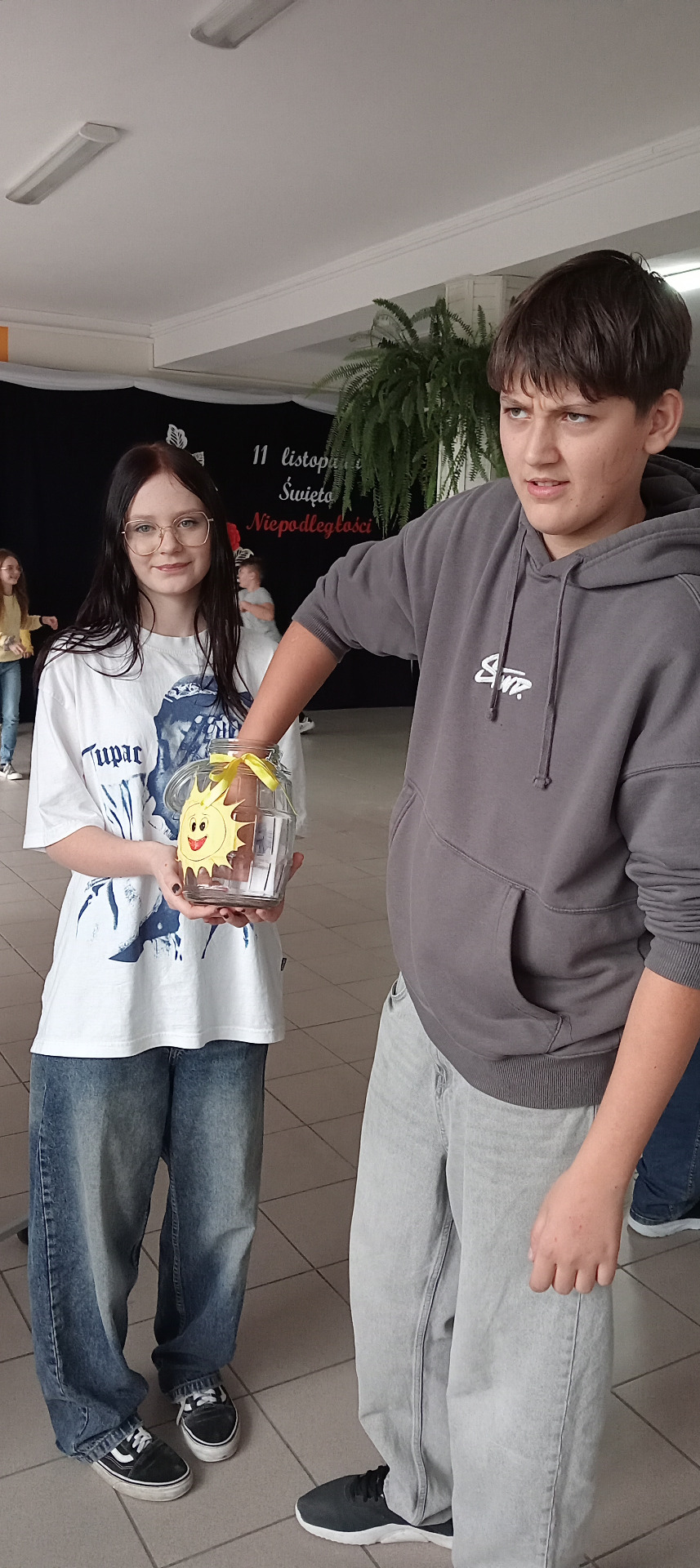 Tego dnia uczennice kl. 7 spacerowały podczas przerw ze "słoikiem życzliwości", z którego wszyscy uczniowie, nauczyciele i pracownicy szkoły mogli losować pozytywne afirmacje. Słoik życzliwości cieszył się ogromnym zaineresowaniem, alosowe sentecje okazały się bardzo zindywizualizowane.