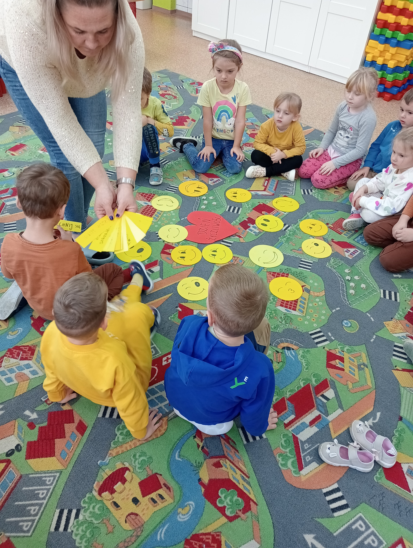 21.11.2024r. obchodziliśmy w naszym przedszkolu ,,Światowy Dzień Życzliwości" . Życzliwość to nic innego jak zachowywanie się w sposób ciepły i przyjacielski wobec innych osób z otoczenia. To zwyczajne, proste gesty, jak zwrócenie się przyjaznym głosem do innych, uśmiechanie się, wzajemne pozdrawianie, spełnianie dobrych uczynków. Celem dzisiejszego dnia było kształtowanie postawy życzliwości i szacunku wobec innych, uwrażliwienie dzieci na wzajemną pomoc. Przedszkolaki tworzyły kodeks życzliwości, odpowiadały na pytania, w jaki sposób można okazywać sobie nawzajem życzliwość, dobroć, pomoc. Brały udział w różnych zabawach integracyjnych.