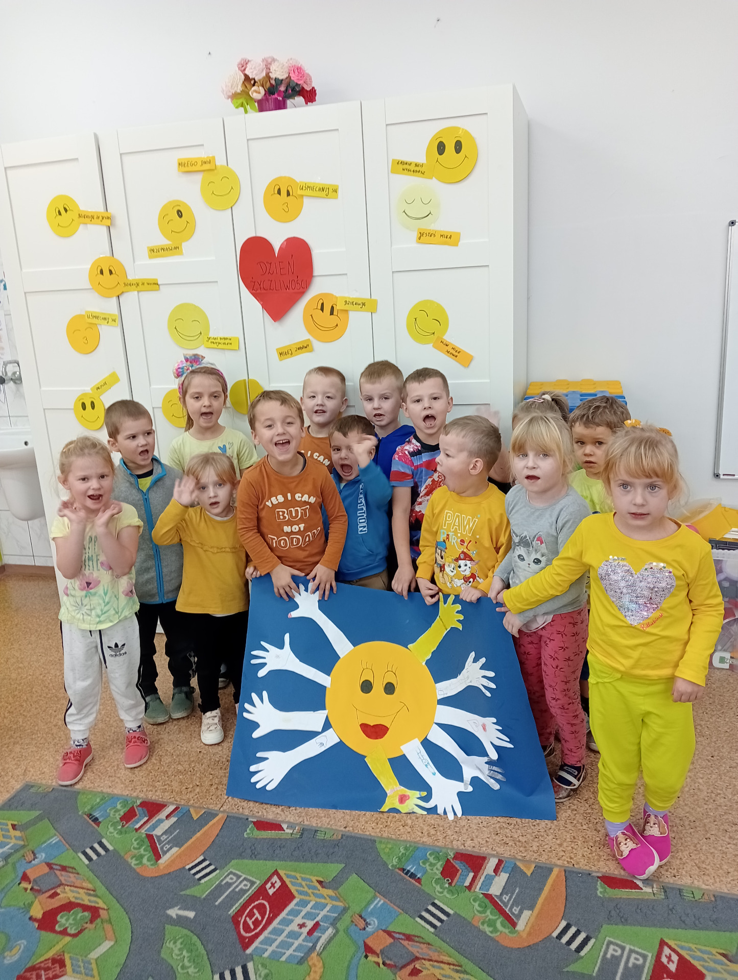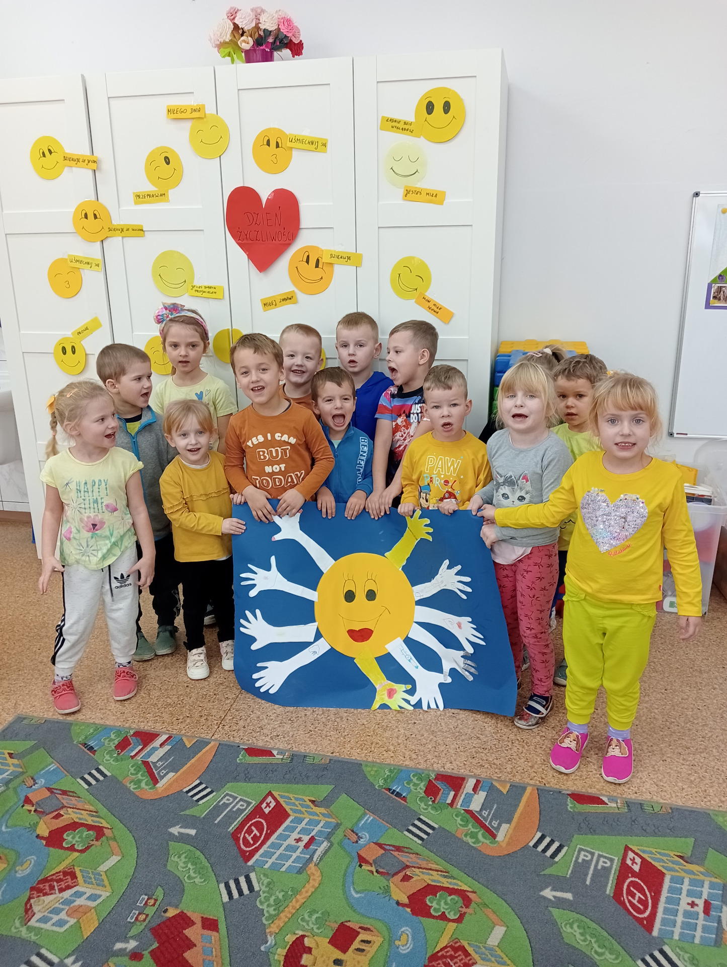 Dla podkreślenia tego dnia dominującym kolorem ubrań był kolor żółty - kolor radości i uśmiechu. Pamiętajmy, że dobro, którym obdarowujemy innych, wraca do nas stokrotnie. I nie zapominajmy na co dzień o zwrotach grzecznościowych🥰, pozdrowieniach🤗 i uśmiechu😀.