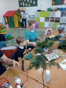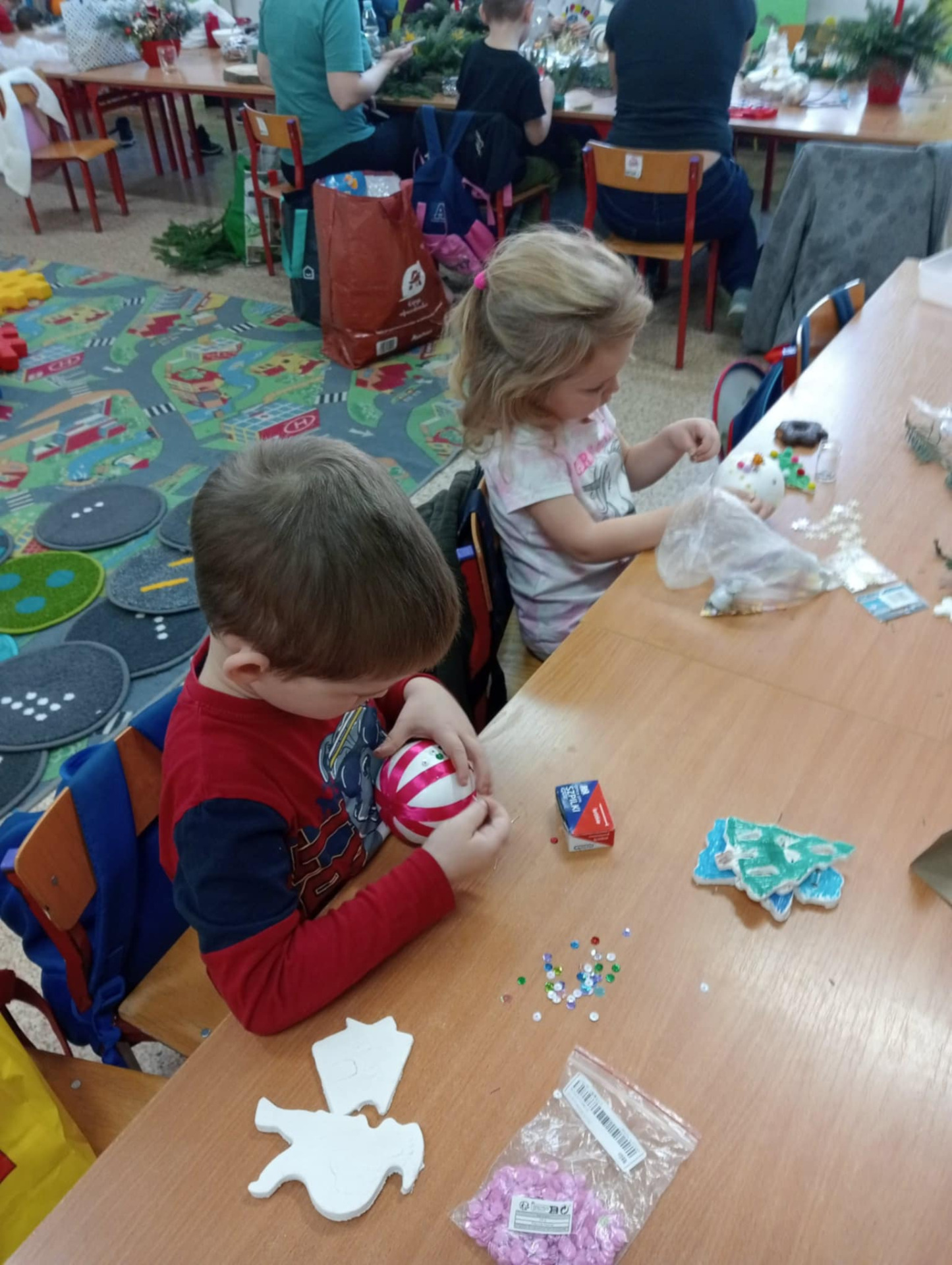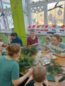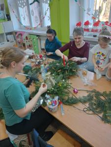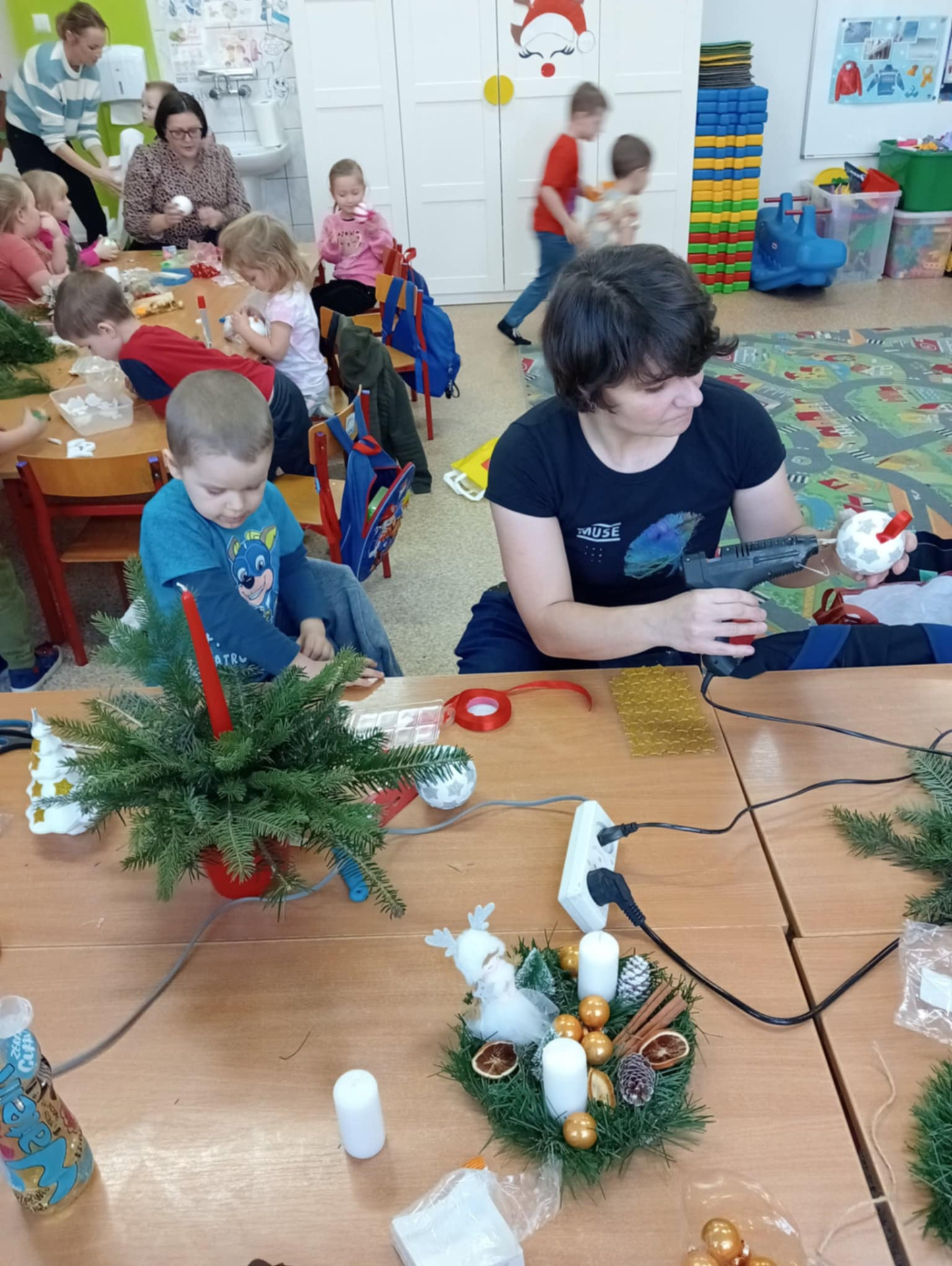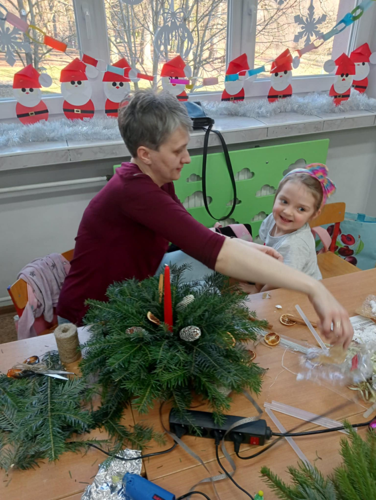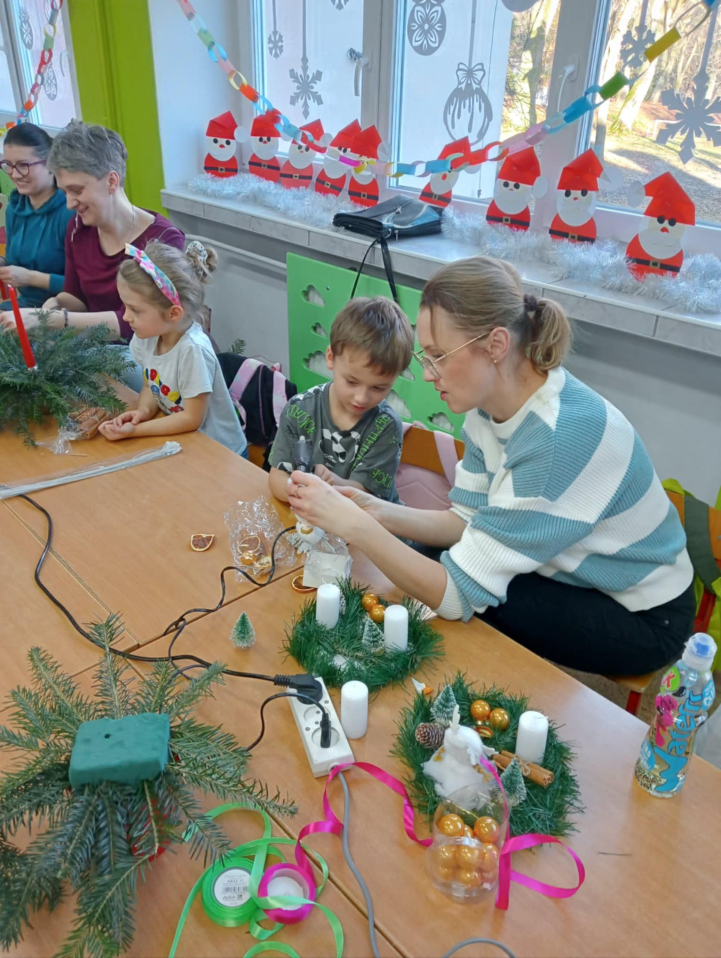 Podtrzymując tę tradycję, w dniu 13 grudnia 2024 roku, w naszej szkole, zostały zorganizowane warsztaty, podczas których nasze przedszkolaki wraz ze swoimi mamami, tworzyły stroiki bożonarodzeniowe. Wsłuchując się w słowa tradycyjnych, polskich kolęd, wszyscy uczestnicy warsztatów zabrali się do pracy, wymieniając się pomysłami i wzajemnie sobie pomagając. W efekcie takiej współpracy, powstało wiele wspaniałych dzieł. Wszyscy byli dumni ze swoich prac.