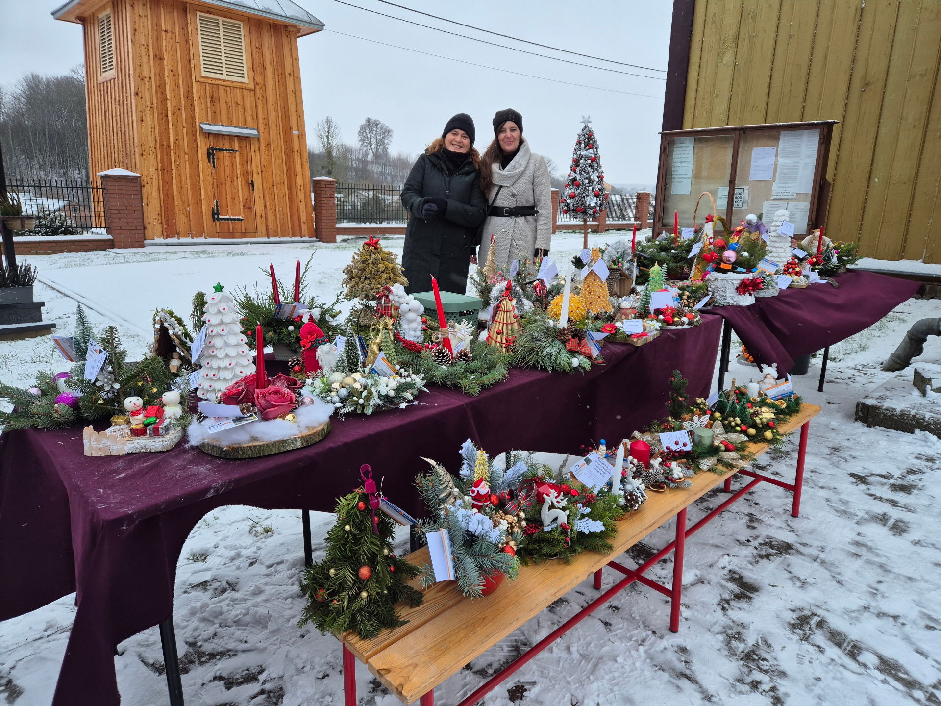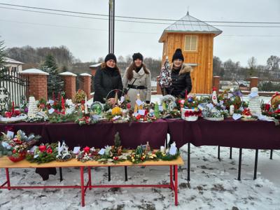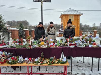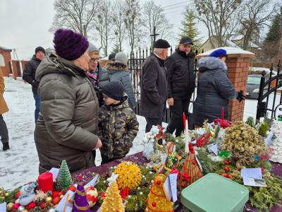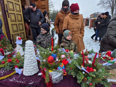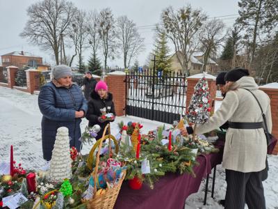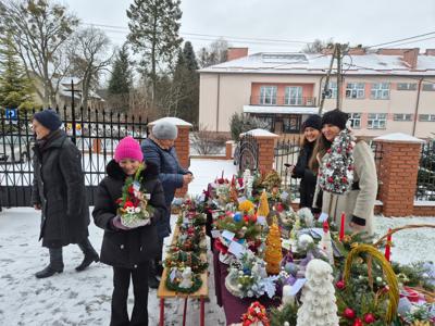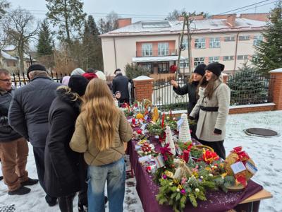 Na stoisku można było znaleźć przepiękne dekoracje świąteczne i stroiki wykonane przez uczniów naszej szkoły, które były owocem konkursu na stroik bożonarodzeniowy, a także warsztatów w naszym przedszkolu. Każda ozdoba była wyjątkowa – aż trudno było się z nimi rozstać!