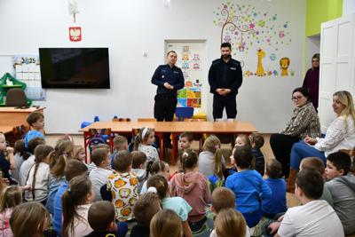 Dodatkowo, dzieci dowiedziały się, jak postępować w przypadku, gdyby się zgubiły. Funkcjonariusze przypomnieli, że zawsze warto szukać pomocy u bezpiecznych dorosłych – pracowników sklepu, ochroniarzy czy policjantów. Omówili również, jak ważne jest zapamiętanie danych kontaktowych do opiekunów oraz jak postępować, gdy zgubienie się nastąpi w miejscach publicznych. Dzięki tym wskazówkom, nasze maluchy zyskają większą pewność, jak reagować w nieoczekiwanych sytuacjach.