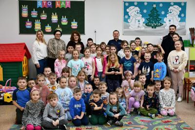 W trakcie spotkania dzieci z przedszkoli oraz uczniowie klas 1-3 miały okazję wysłuchać pogadanki na temat bezpiecznych ferii zimowych. Policjanci zwrócili uwagę na to, jak unikać niebezpiecznych sytuacji podczas zabaw na śniegu, w górach czy na lodzie, a także jak dbać o bezpieczeństwo w czasie ferii.