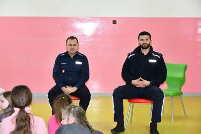Dziś w naszej szkole odbyło się spotkanie z przedstawicielami Komendy Powiatowej Policji w Kraśniku – asp. Sebastianem Janickim (Dzielnicowym) oraz asp. Pawłem Cieliczko (Oficerem Prasowym).