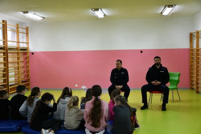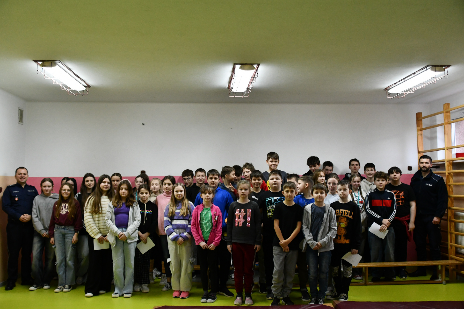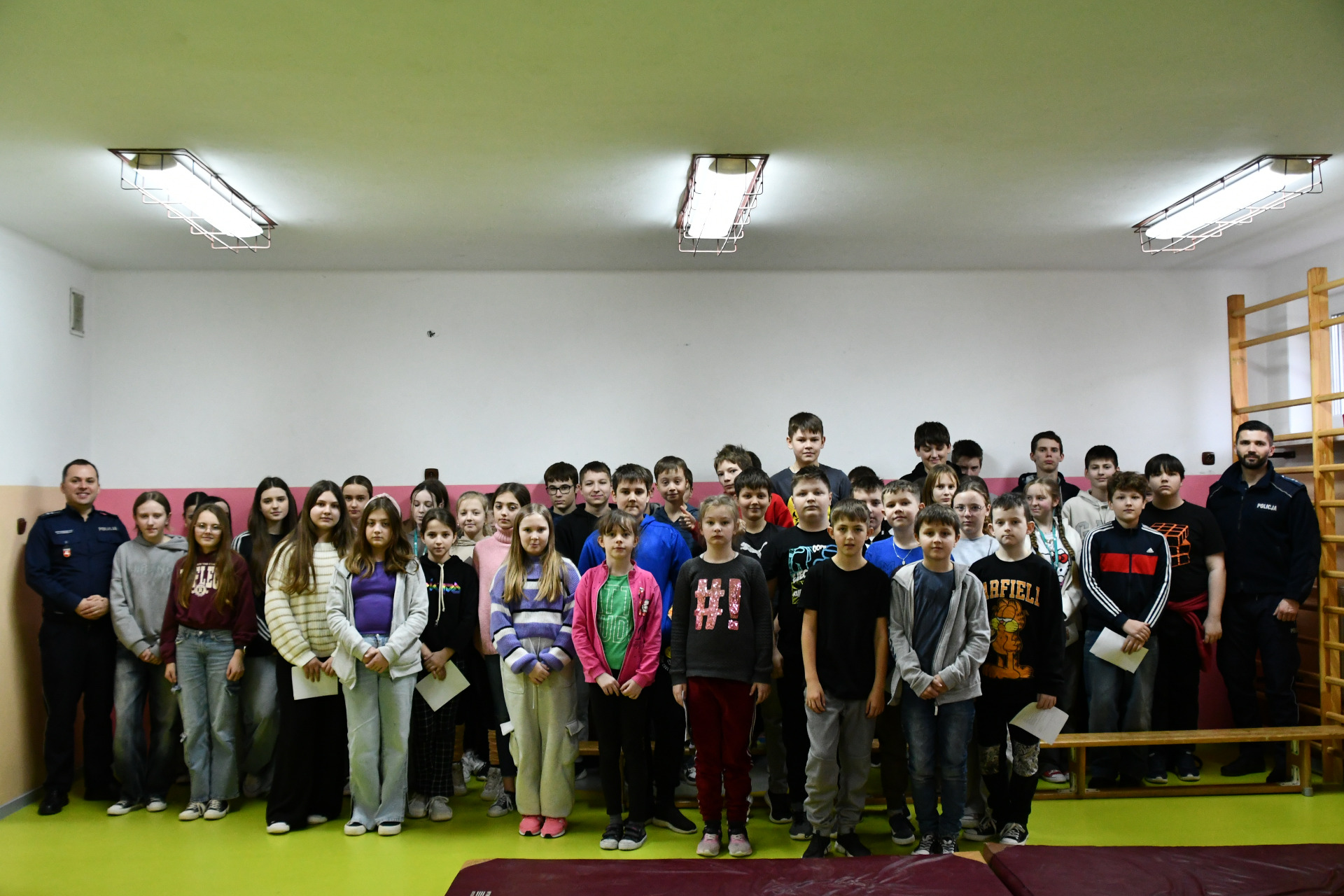 Starsze klasy (4-8) miały natomiast okazję uczestniczyć w pogadance na temat zagrożeń, które czyhają na młodych ludzi w sieci. Podczas spotkania omówione zostały kwestie związane z cyberprzemocą, niebezpiecznymi aplikacjami oraz zagrożeniami płynącymi z kontaktów z nieznajomymi w internecie. Funkcjonariusze szczegółowo wyjaśnili, jak młodzież może chronić swoją prywatność online, jak rozpoznać oszustów internetowych oraz jakie konsekwencje mogą wyniknąć z nieostrożnego korzystania z internetu. Uczniowie dowiedzieli się także, jak zgłaszać przypadki nękania w sieci i do kogo zwrócić się o pomoc w razie potrzeby.