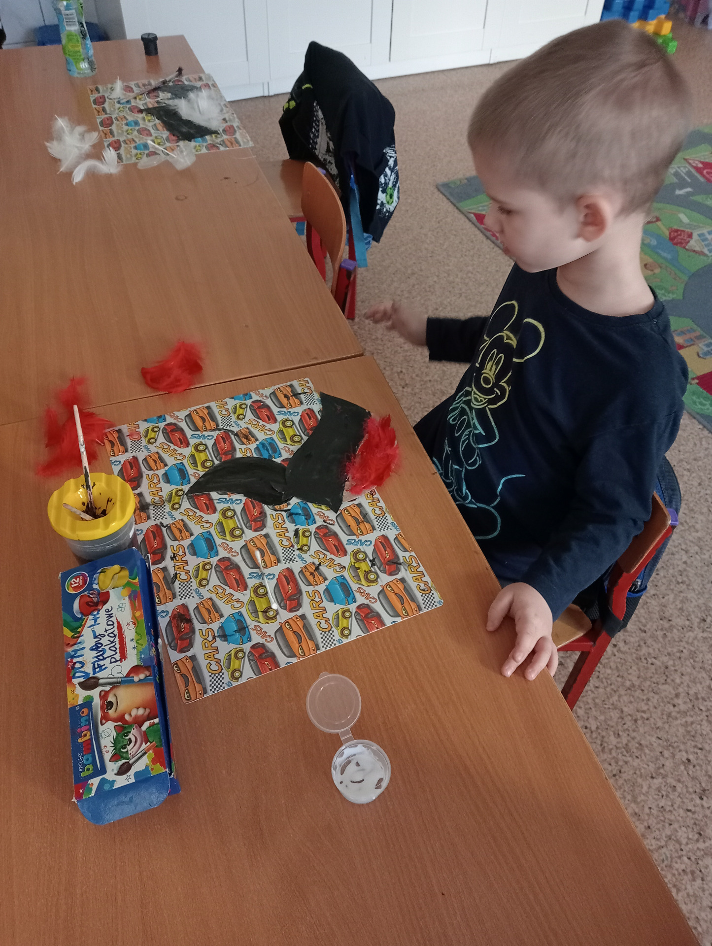 Zima to trudny czas dla ptaków, ale z pomocą przedszkolaków przetrwają ją na pewno łatwiej. Na początku zajęć przypomnieliśmy sobie, które ptaki odleciały do ciepłych krajów, a które pozostały w Polsce lub przyleciały z dalekiej północy. Wykorzystując zdobytą wiedzę wykonaliśmy pracę plastyczną pt. ,, Zimowe ptaki" , a także smakołyki dla naszych skrzydlatych przyjaciół (mieszając różne rodzaje zbóż, nasion z tłuszczem, który ptaszki uwielbiają). Nasze pożywne kule wspólnie zawiesiliśmy na gałęzie drzew obok karmników, które także zostały uzupełnione pożywieniem. Zachęcamy wszystkie dzieci do dokarmiania ptaków. To doskonała okazja do kształtowania u dzieci poczucia odpowiedzialności oraz wrażliwości na losy zwierząt.