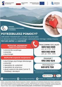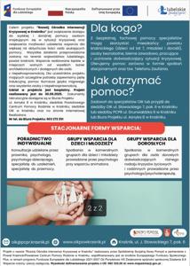 Z bezpłatnej, fachowej pomocy mogą skorzystać dzieci od lat 7, młodzież oraz osoby dorosłe zamieszkujące, pracujące lub uczące się na terenie powiatu kraśnickiego.