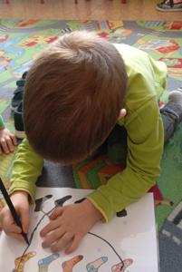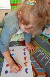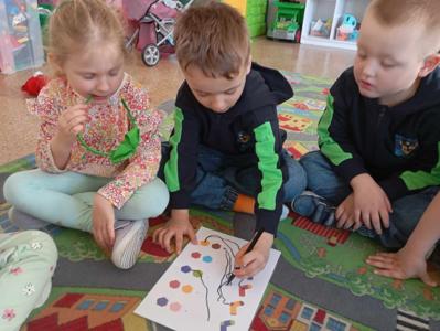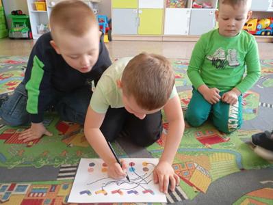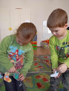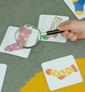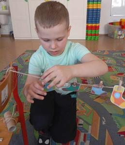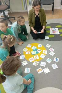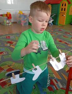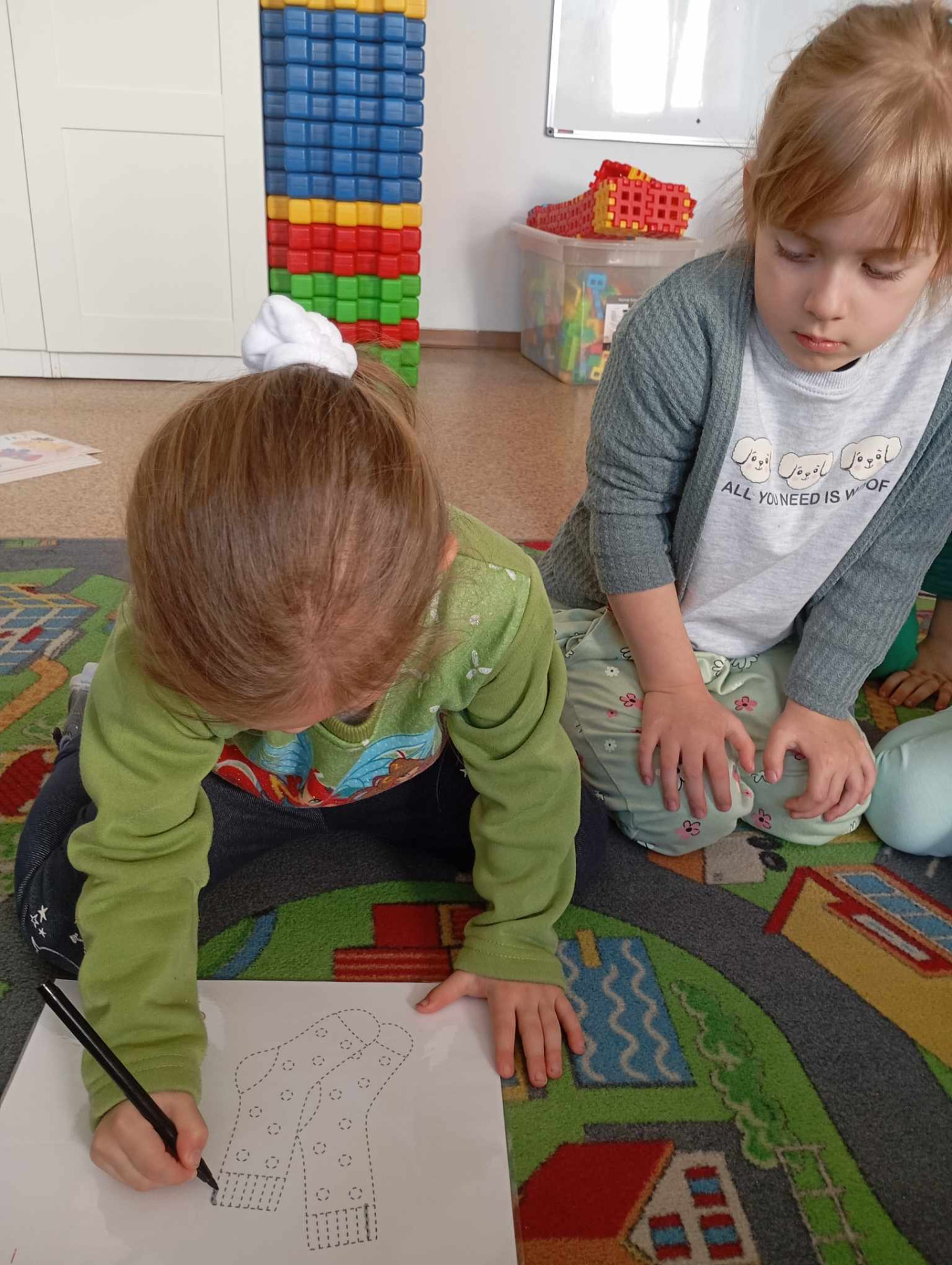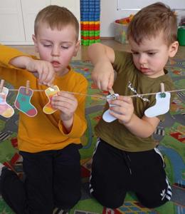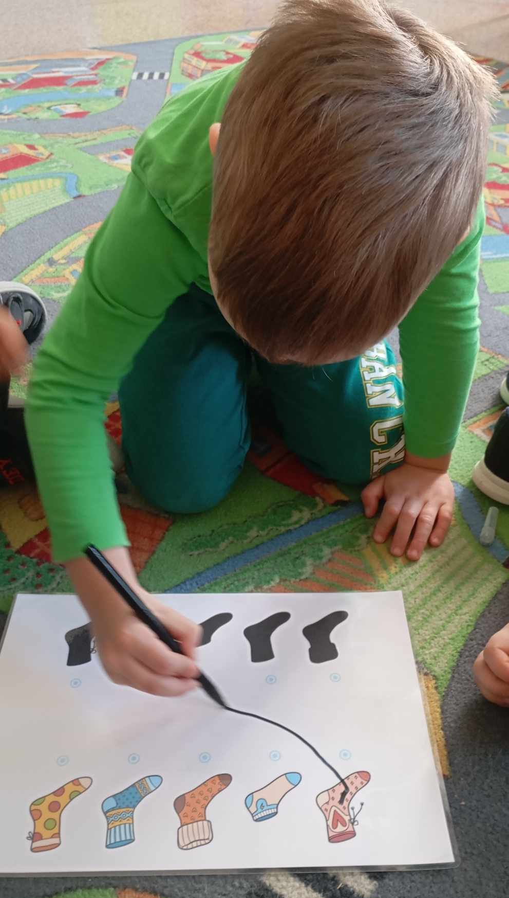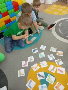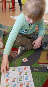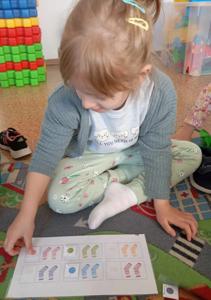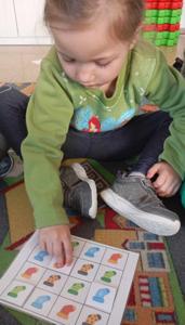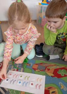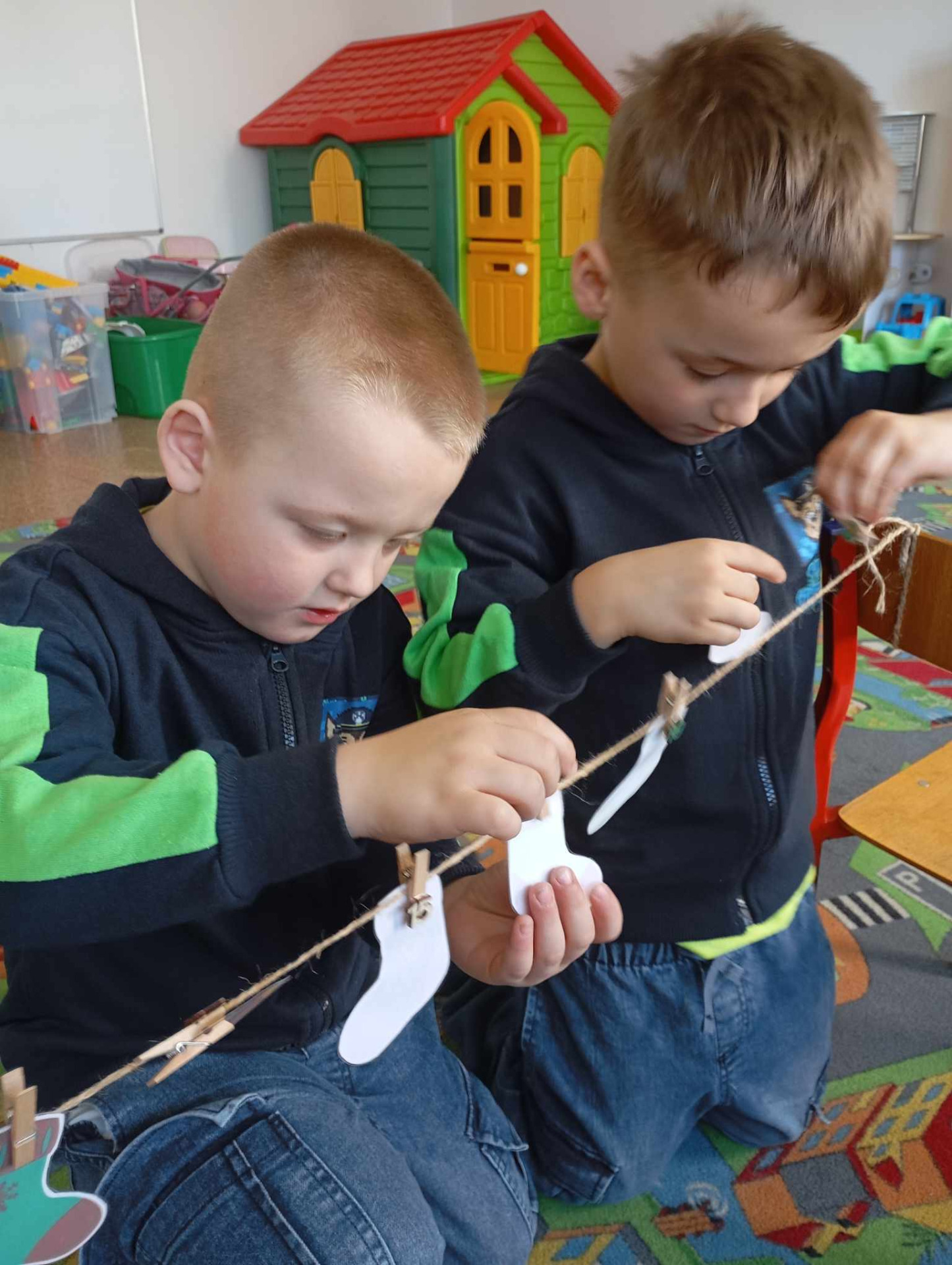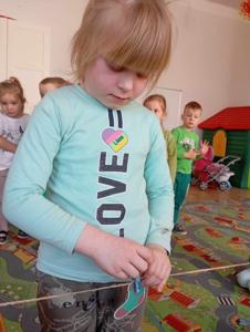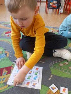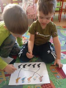Dzieci z wielkim zaangażowaniem uczestniczyły również w zabawach, które uczyły współpracy, wzajemnego zrozumienia oraz wzmacnianie relacji w grupie. Zmierzyły się z dobieraniem i łączeniem w pary, szukaniem cienia skarpetek, poprawianiem po śladzie. Rozwieszały również „skarpetkowe” pranie, grały dobble i jak prawdziwi detektywi, wyszukiwały skarpetek po opisie.