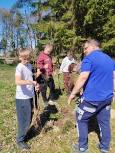Sadzenie drzewek przebiegło w miłej atmosferze, a każdy z uczniów miał okazję wziąć aktywny udział w kopaniu dołków sadzeniu i podlewaniu. Dzięki tej inicjatywie młodzież zyskała nie tylko praktyczną wiedzę ogrodniczą, ale także poczucie że robi coś pożytecznego dla przyszłych pokoleń. Mamy nadzieję że nasz szkolny tradycyjny sad z każdym rokiem będzie piękniał, a w przyszłości da obfite plony.