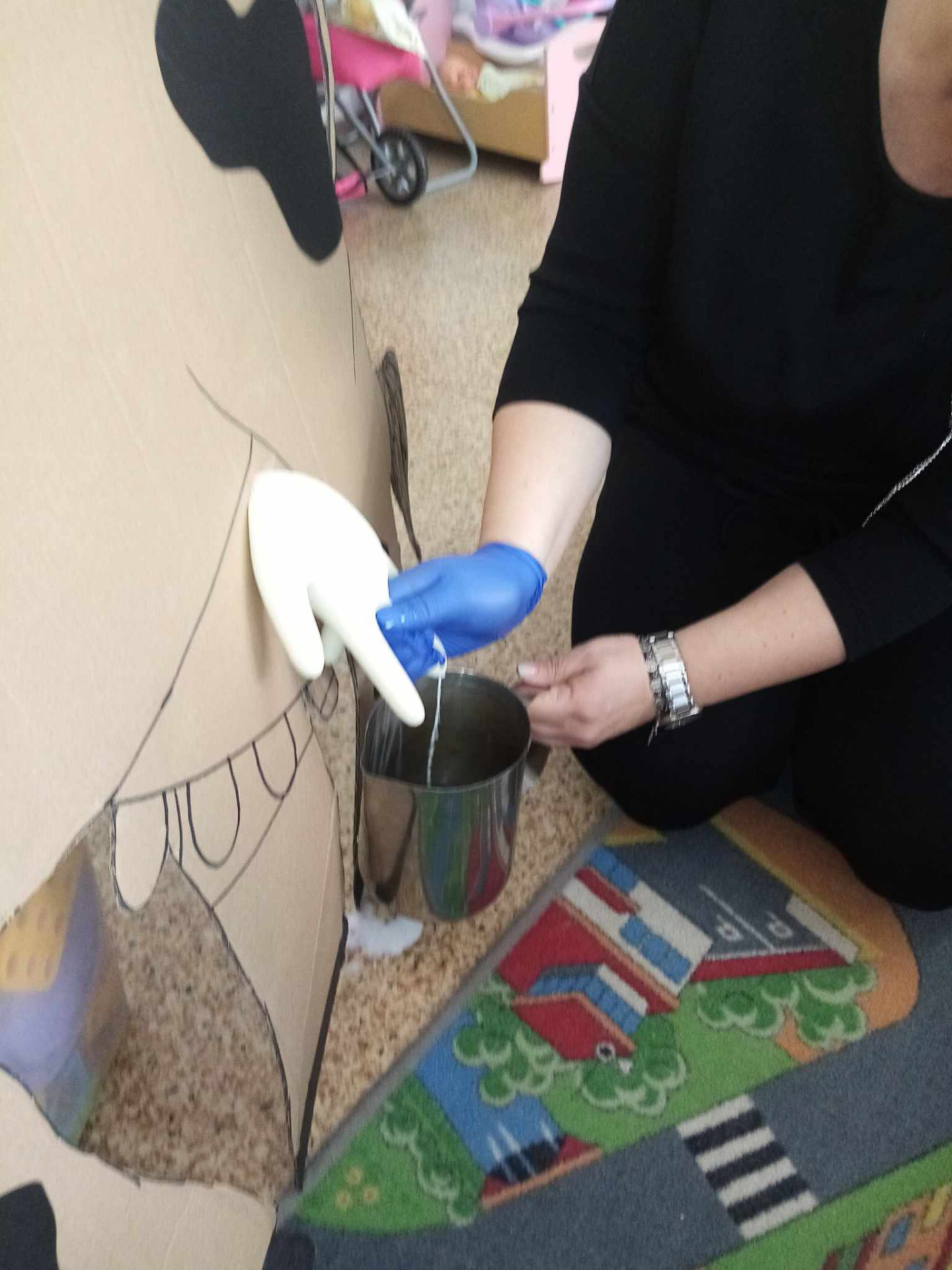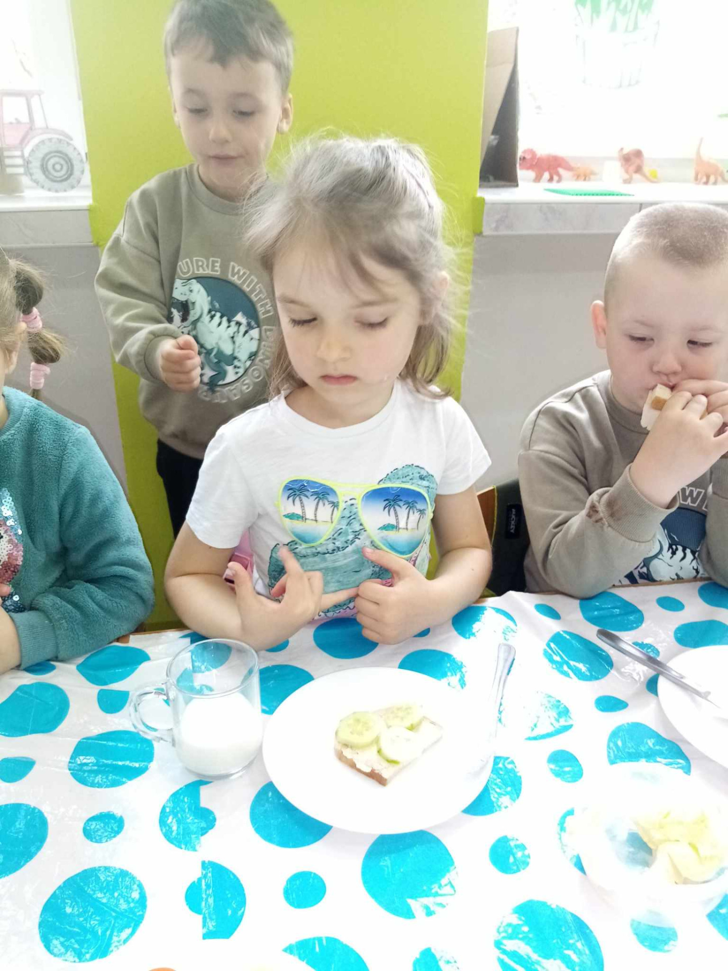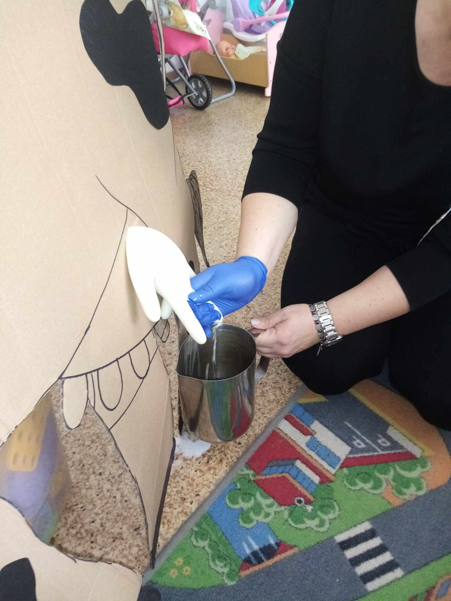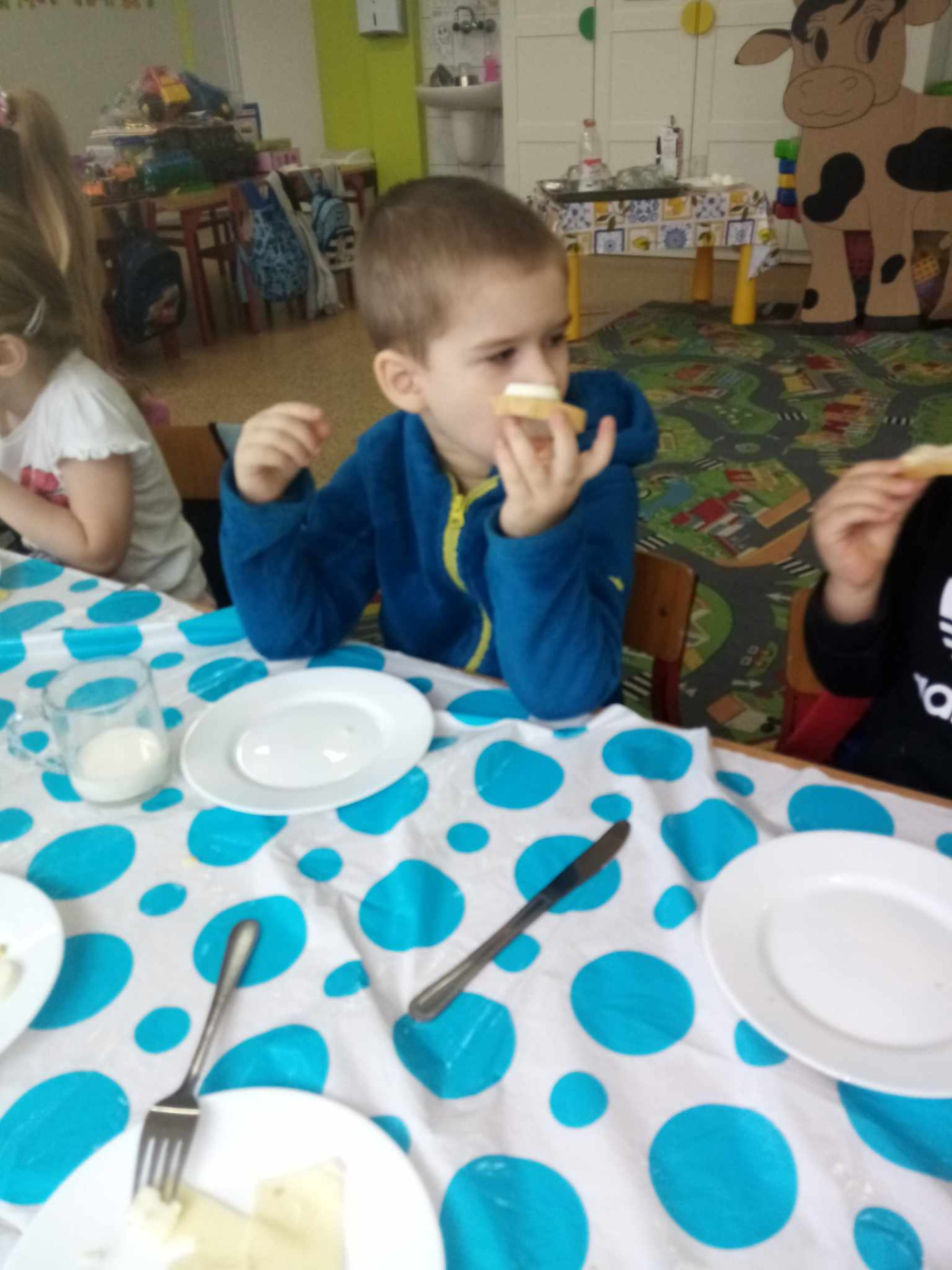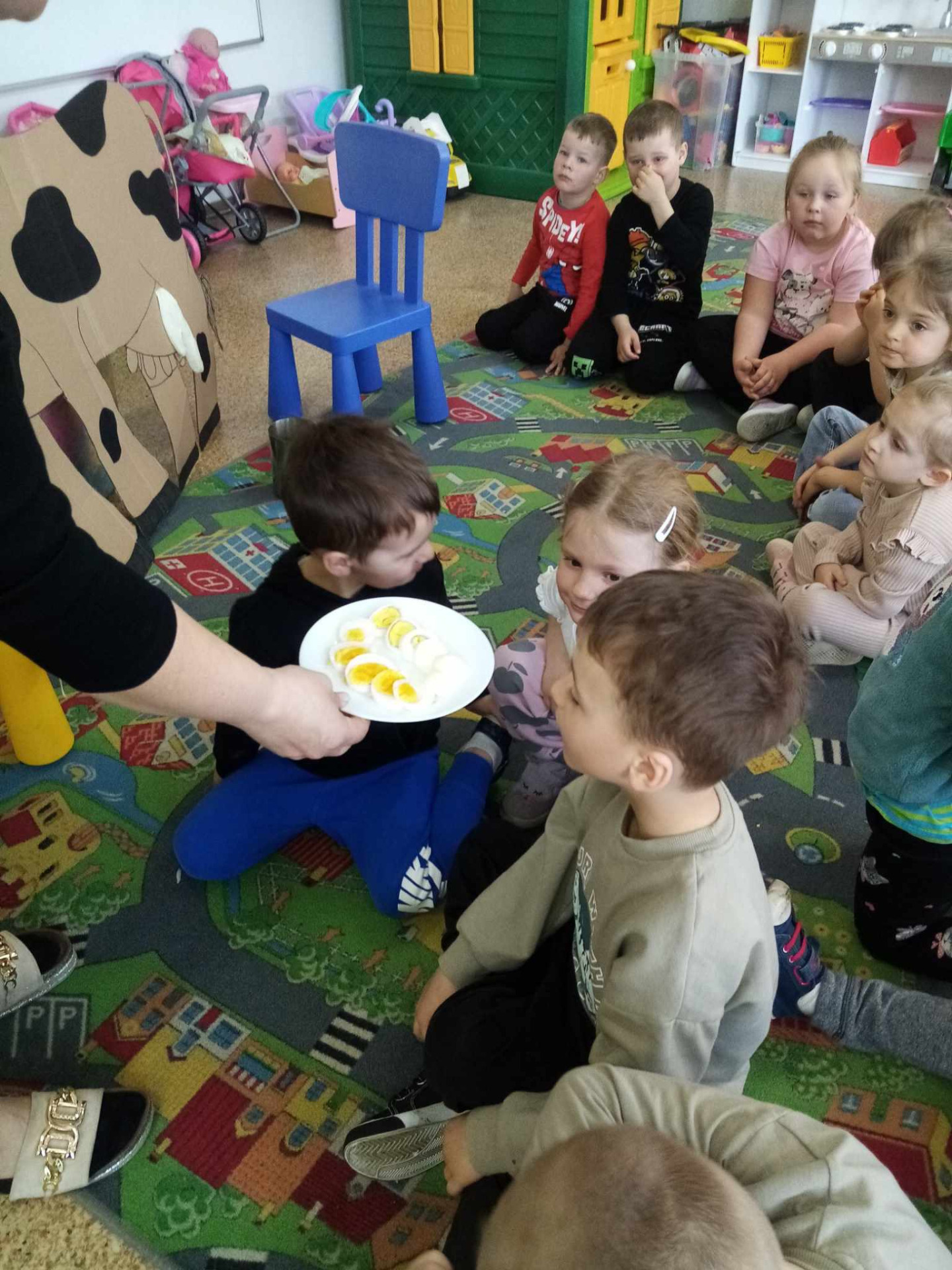 Główną atrakcją była jednak... sylweta krowy, którą dzieci mogły "wydoić"! Było przy tym mnóstwo śmiechu, zabawy i nauki – przedszkolaki dowiedziały się, skąd bierze się mleko, jak wygląda praca na wsi i jak powstają znane im produkty spożywcze.