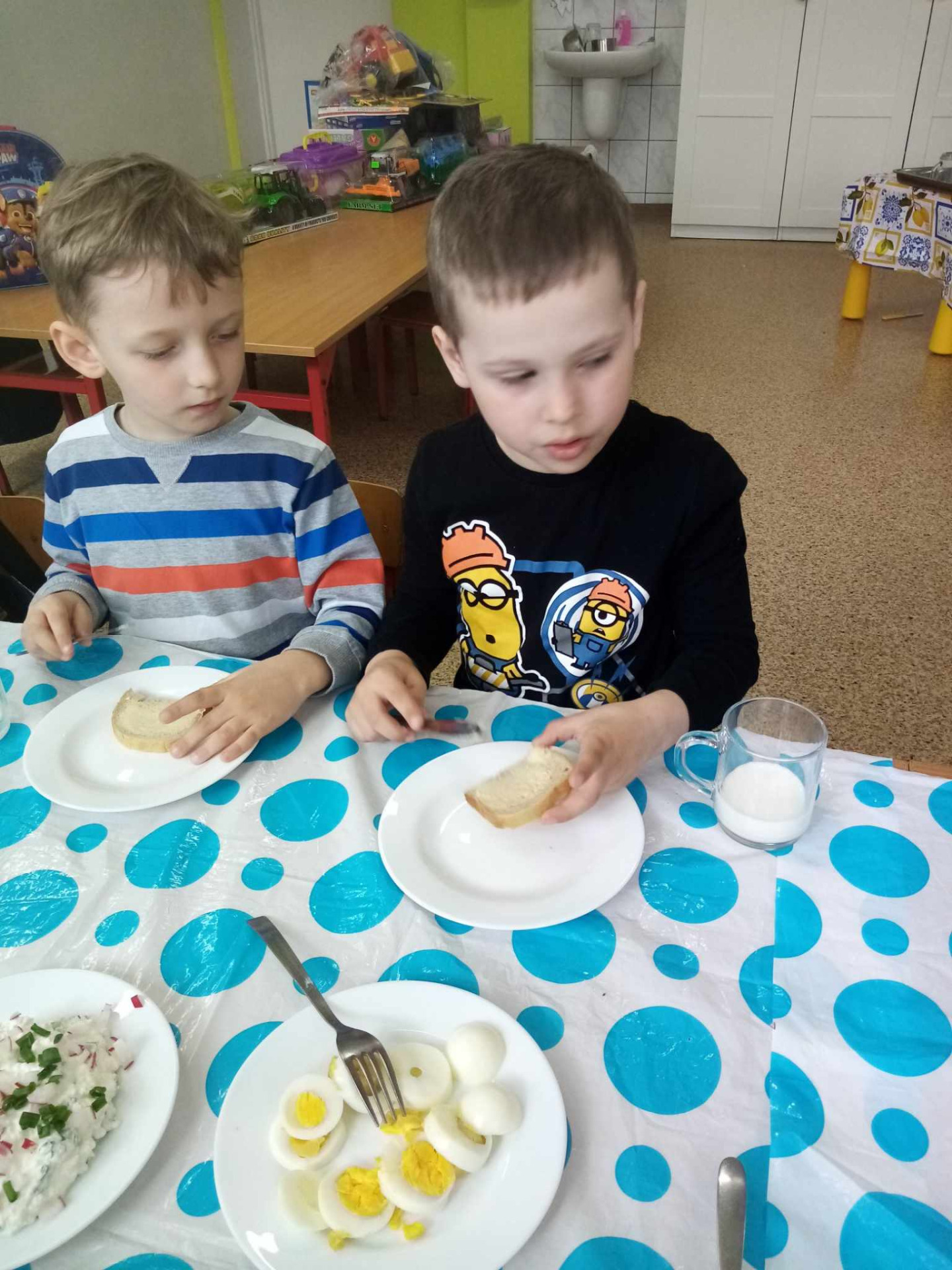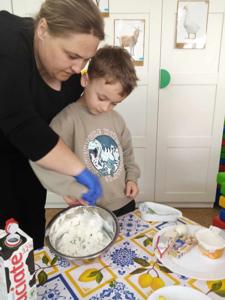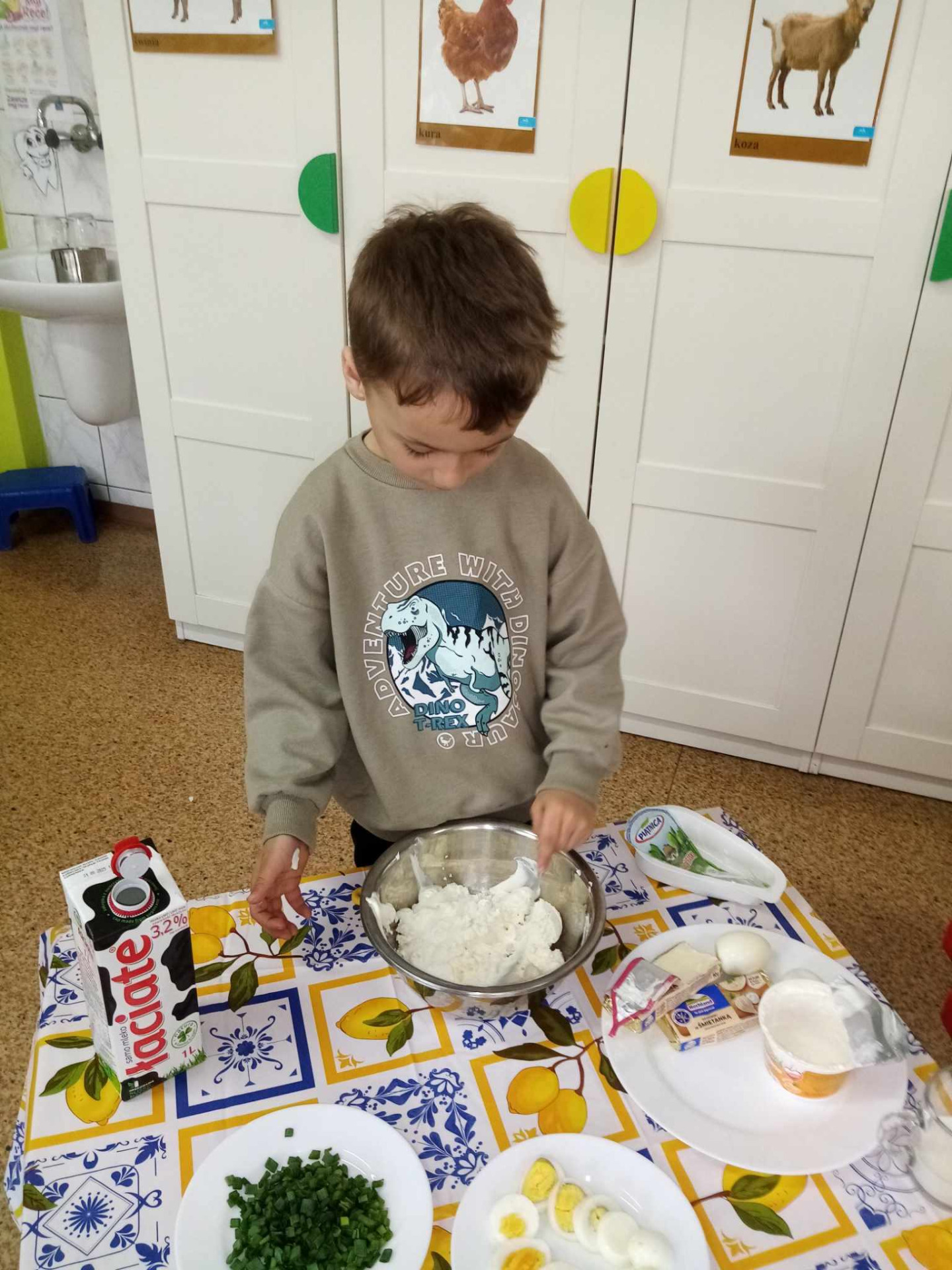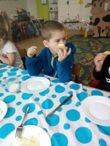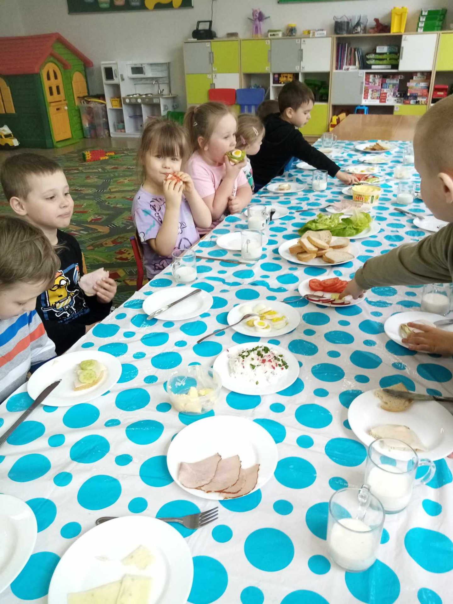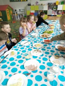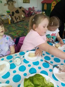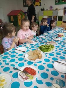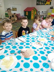 Dzisiejsze (10.04.2025 r.) zajęcia w naszym przedszkolu były nie tylko smakowite, ale też pełne wiejskich klimatów! Przedszkolaki przygotowywały kanapki z produktów pochodzenia głównie zwierzęcego – jajek, serów, twarożku i wędlin – w ramach warsztatów kulinarnych nawiązujących do naszego bloku tematycznego o zwierzętach podwórkowych.