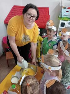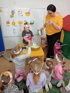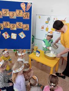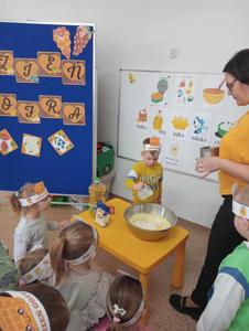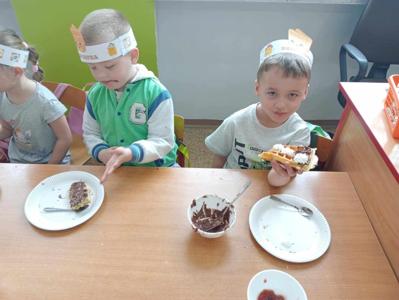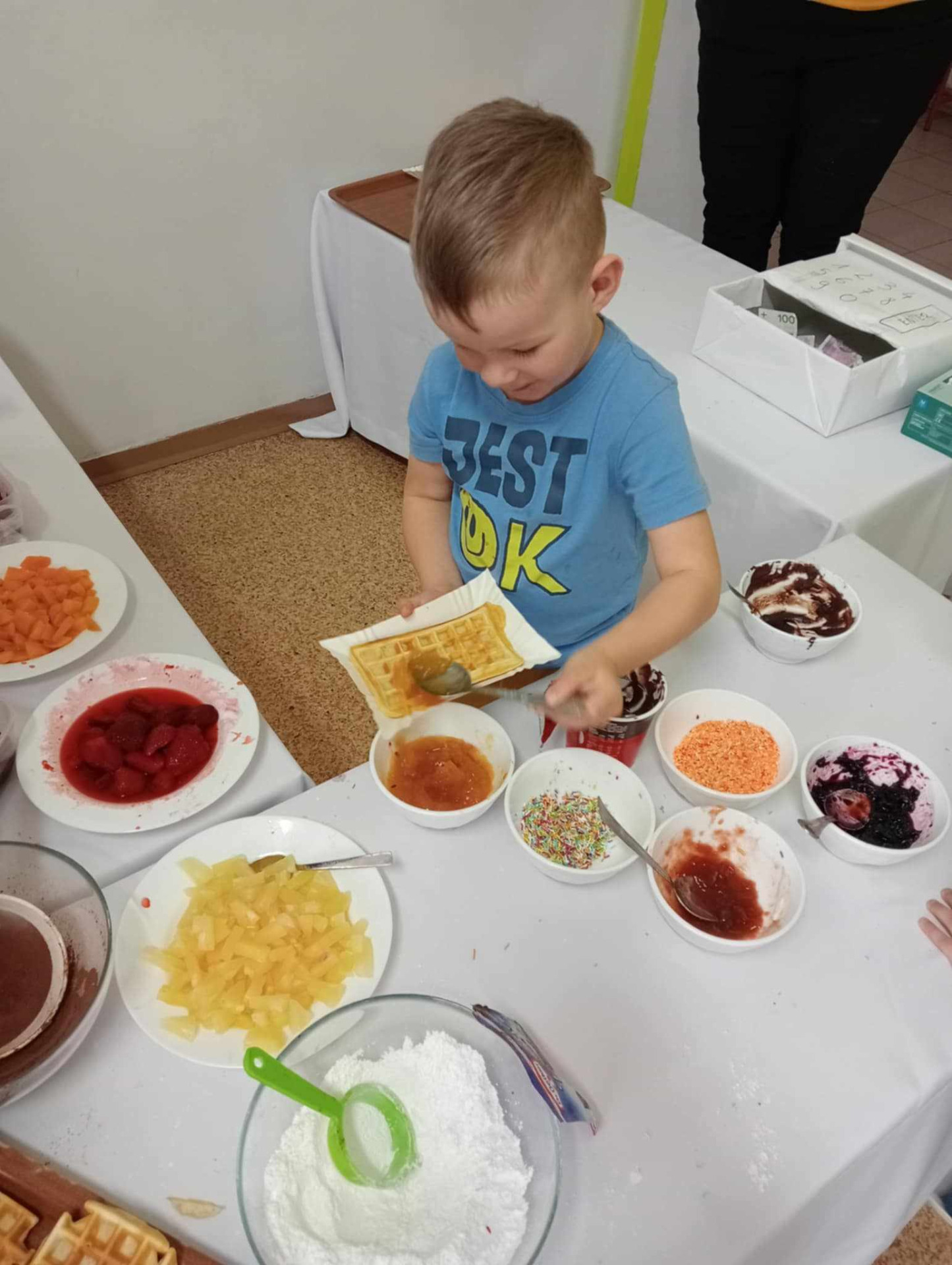 Przedszkolaki z wielkim zaangażowaniem przygotowywały ciasto, a potem własnoręcznie dekorowały chrupiące wypieki. Było mnóstwo śmiechu, kolorowych posypek i owocowych dodatków!